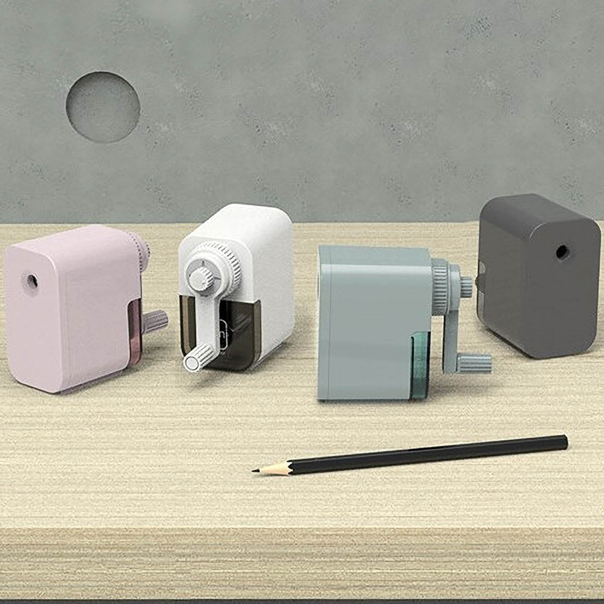 Kompakter Bleistiftspitzer in modernen Farben mit langlebiger Spiral-Klinge. Ermöglicht drei einstellbare Spitzendicken (fein, mittel, dick) und verhindert Überanspitzen automatisch. Der gesicherte Spänebehälter schützt vor ungewolltem Herausfallen beim Transport.