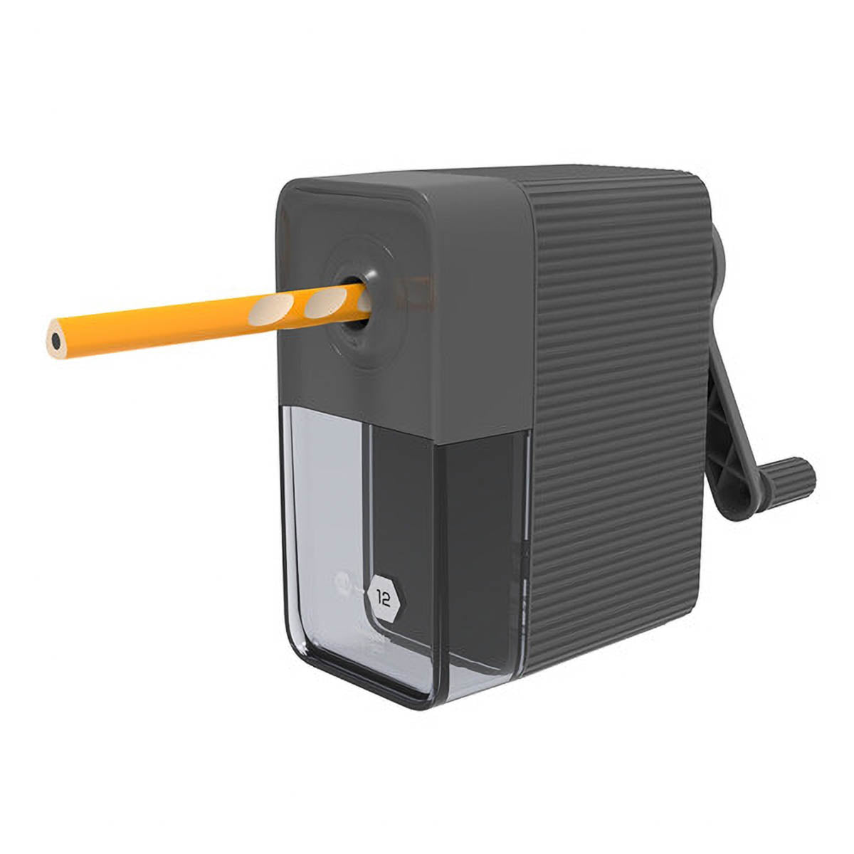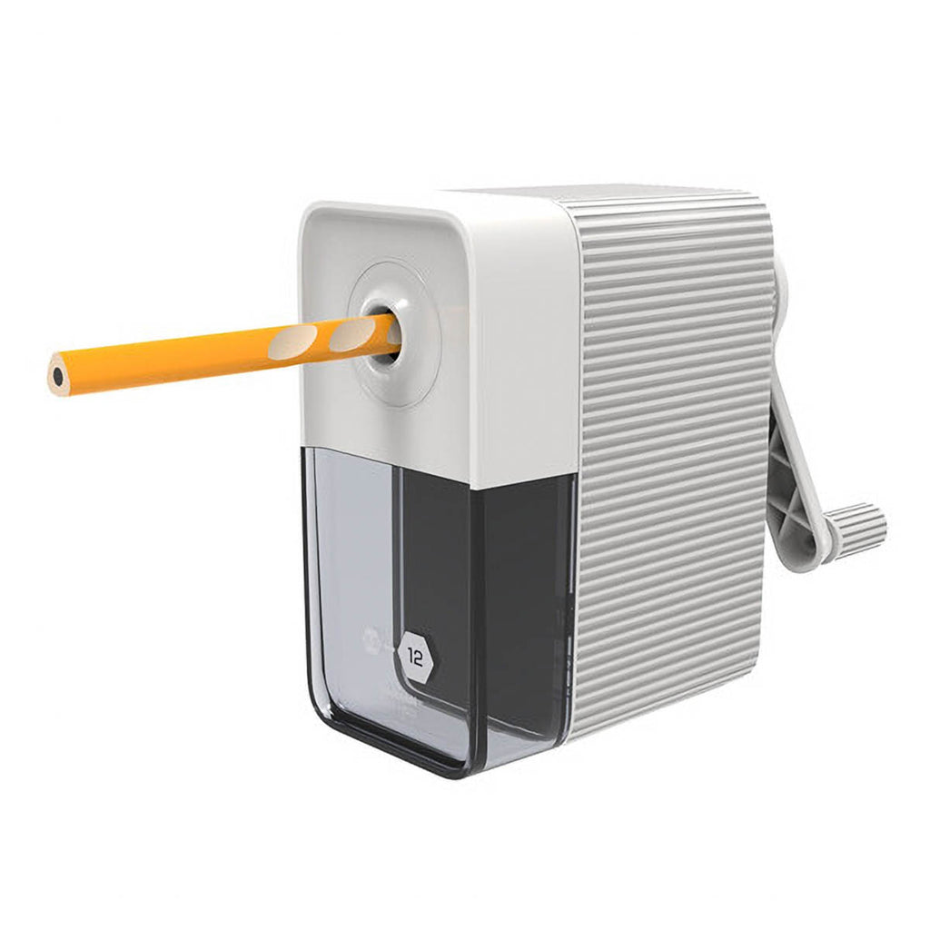 Der Anspitzer ist für Holz- und Buntstifte mit einem Durchmesser von 6,5 bis 12 mm geeignet. Über eine Kurbel wird der Stift sicher eingezogen und ohne Verletzungsgefahr angespitzt. Fünf einstellbare Spitzendicken und eine Markierung für die minimale Länge sorgen für präzise und gleichmäßige Ergebnisse.