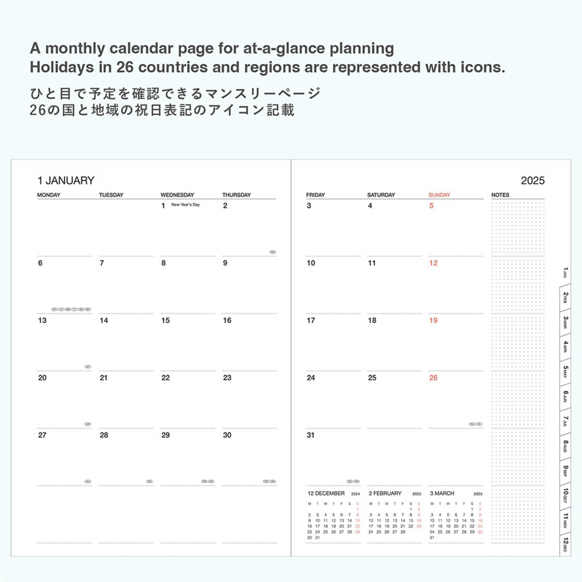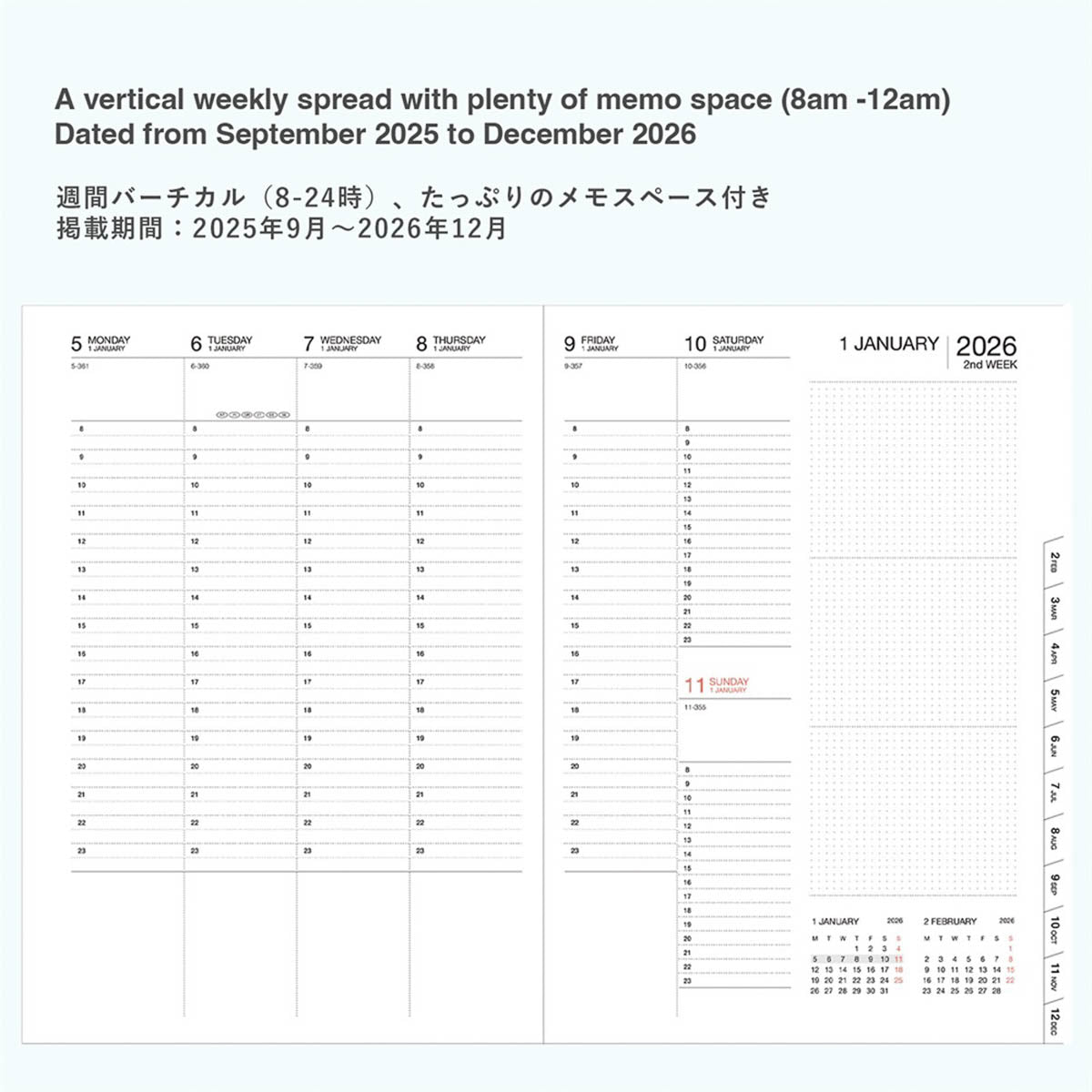 Der internationale A5-Kalender bietet ein 16-Monats-Kalendarium von September 2025 bis Dezember 2026 mit Wochenübersicht auf zwei Seiten und zusätzlichen Monats- und Jahresseiten. Die patentierte Zipp-Hülle aus PVC mit reduziertem Phthalatgehalt schützt Inhalte und ermöglicht die Bedienung eines Smartphones von außen. FSC-zertifiziertes Papier, zahlreiche Zusatzseiten sowie Platz für Notizen machen ihn zu einem praktischen Begleiter für Alltag und Reisen.