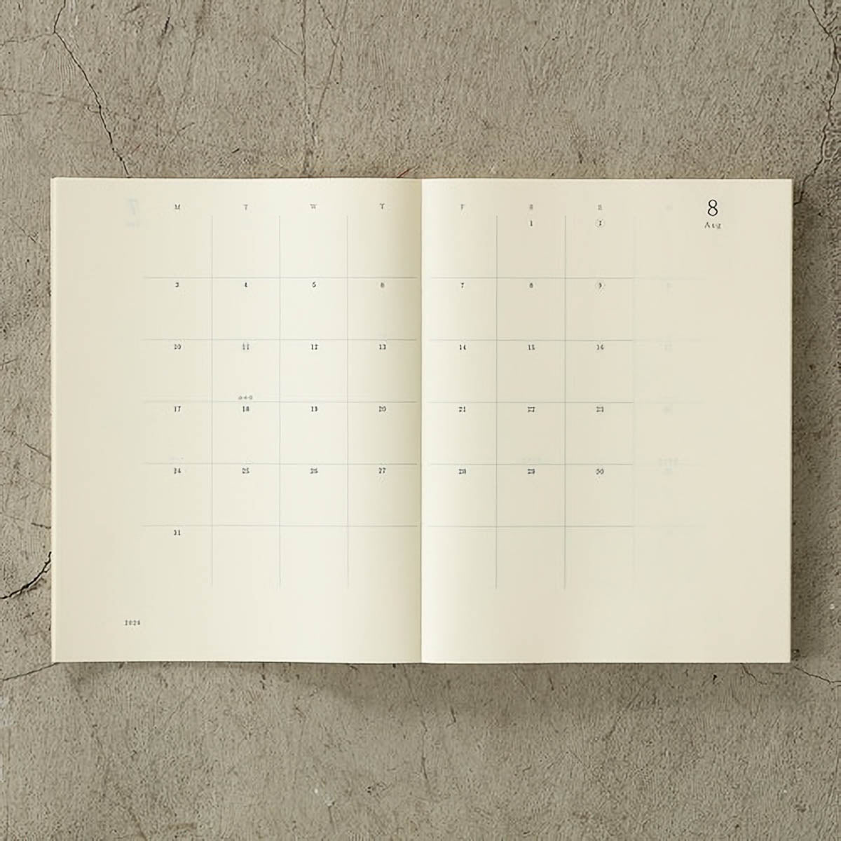 Das MD Notebook Diary verbindet ein minimalistisches Design mit klar strukturierten Monats- und Wochenübersichten sowie großzügigen Notizseiten. Dank der Fadenbindung liegt es flach auf und bietet ein besonders komfortables Schreiberlebnis. Das glatte MD-Papier ermöglicht Schreiben mit verschiedenen Stiften und eignet sich für Planung, Tagebuchführung oder kreative Ideen. Leicht und kompakt begleitet es zuverlässig durch den Alltag.