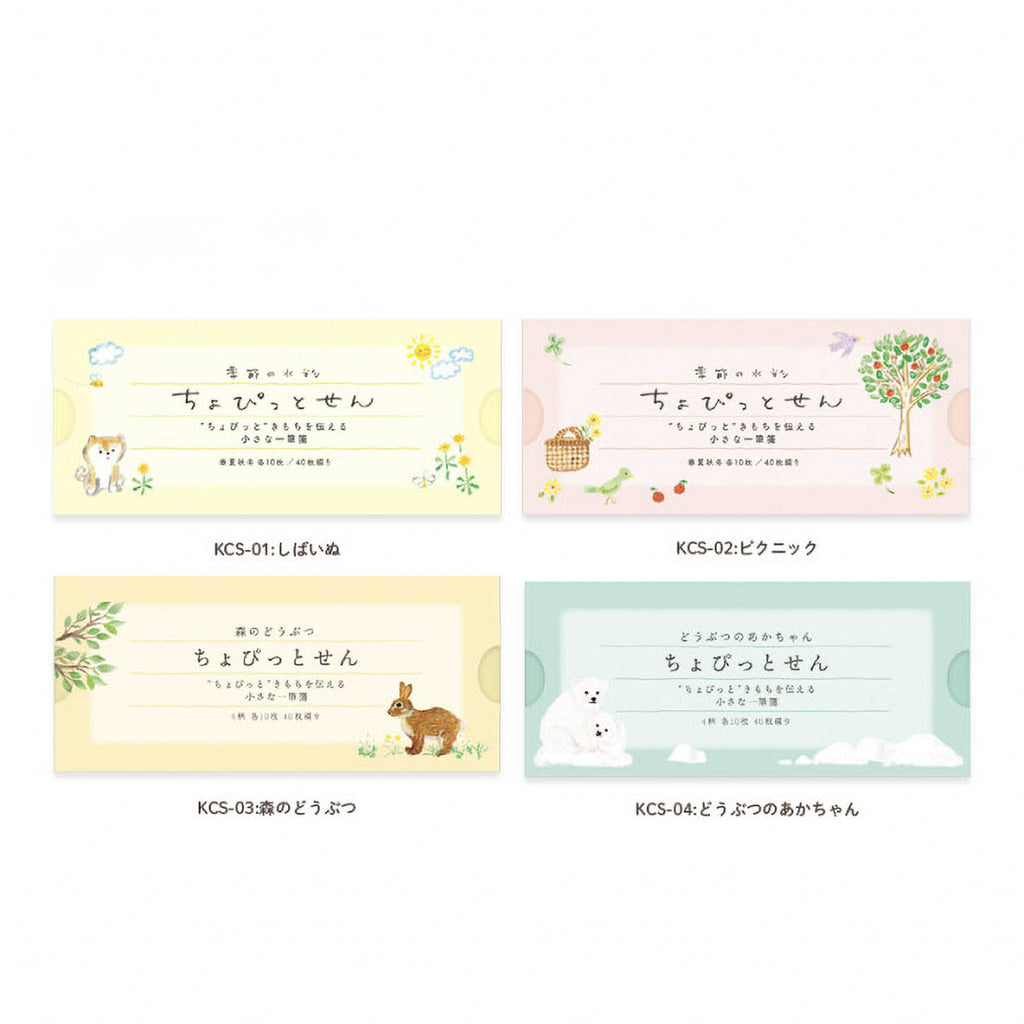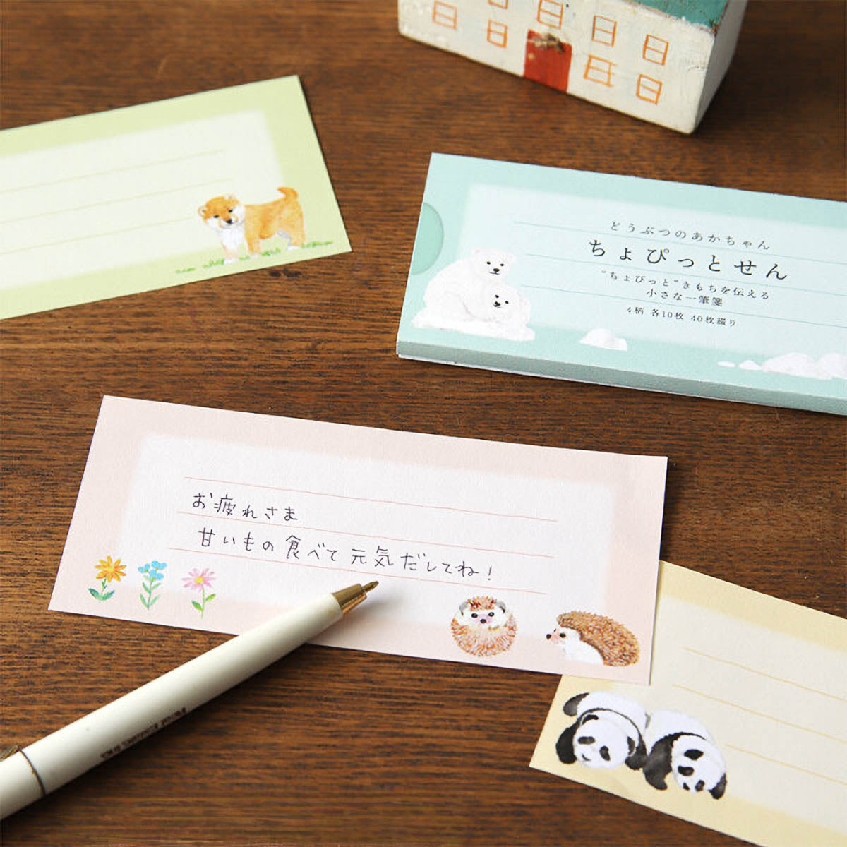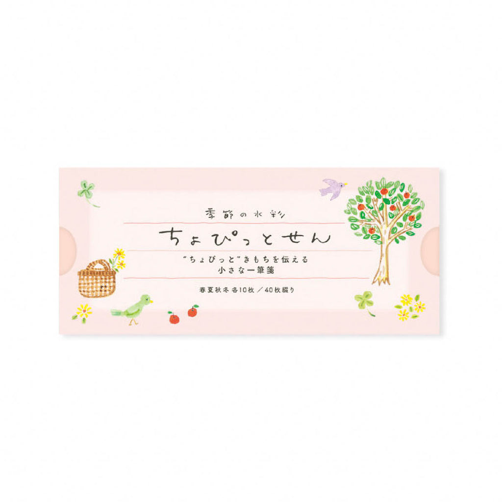Die kleine Einlegekarte eignet sich ideal für kurze Nachrichten oder Dankesworte. Vier liebevoll in Aquarell gestaltete Motive zeigen Szenen aus den Jahreszeiten – darunter ein Shiba-Inu mit Löwenzahn, eine Sommernacht, herbstliche Blätter und einen Wintervogel. Die 40 Blätter sind in einer handlichen Schutzhülle mit Fingeraussparungen aufbewahrt und lassen sich leicht entnehmen.