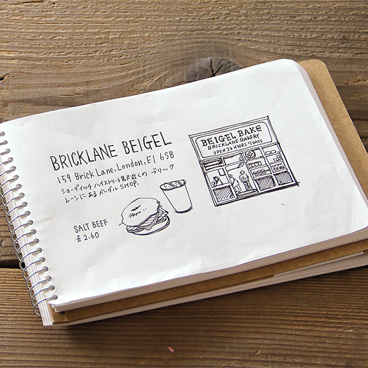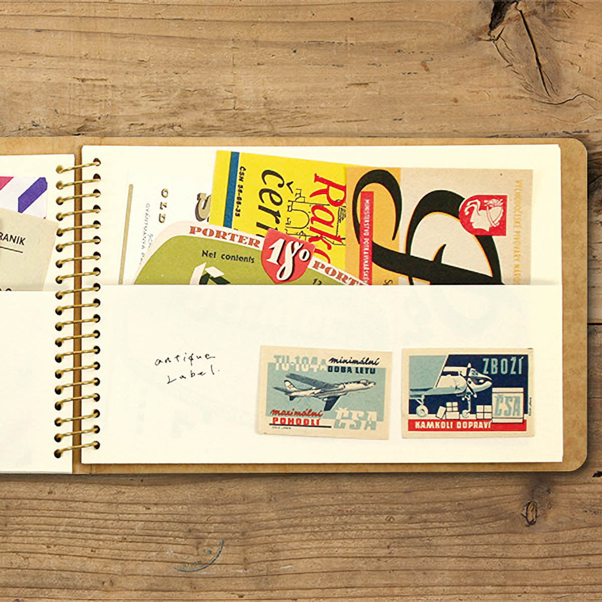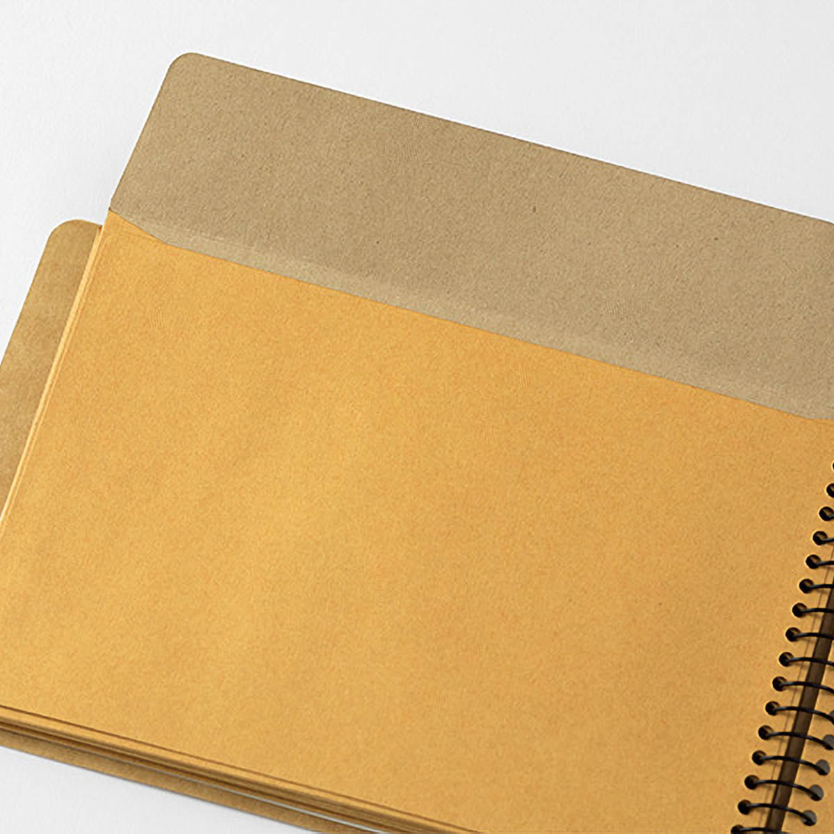 Das Notizbuch vereint verschiedene Papiersorten – von glatt schreibendem Weißpapier über kräftiges Kraftpapier bis hin zu Aquarellpapier – sowie integrierte Taschen und Hüllen. Eine robuste, kunststoffverstärkte Deckseite fasst die Blätter ein, die einzeln per Hand mit einer Spiralbindung verbunden werden. Es eignet sich ideal zum freien Schreiben, Skizzieren oder Aufbewahren kleiner Erinnerungsstücke unterwegs.