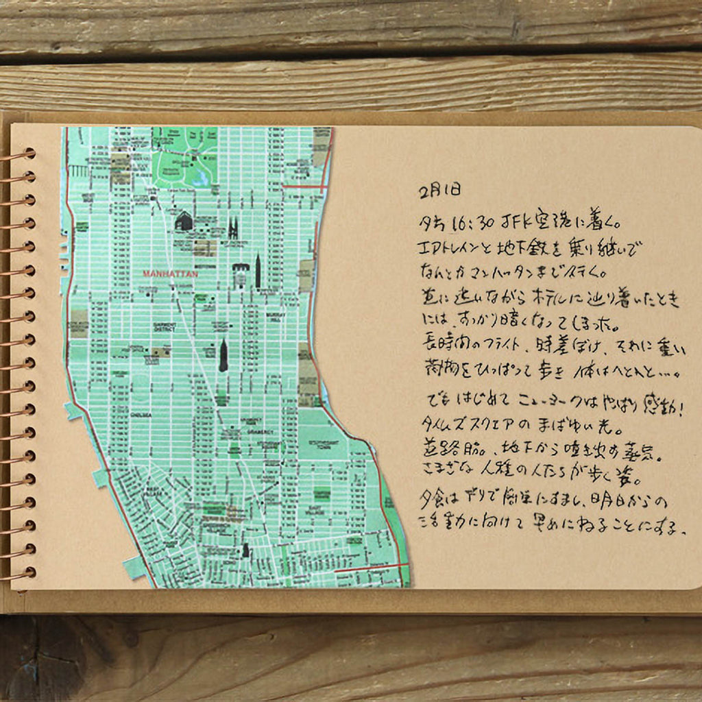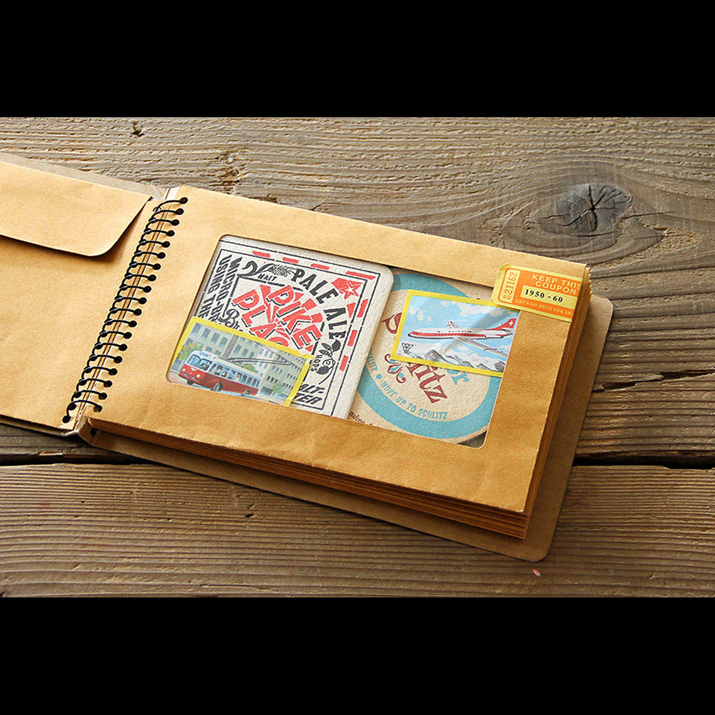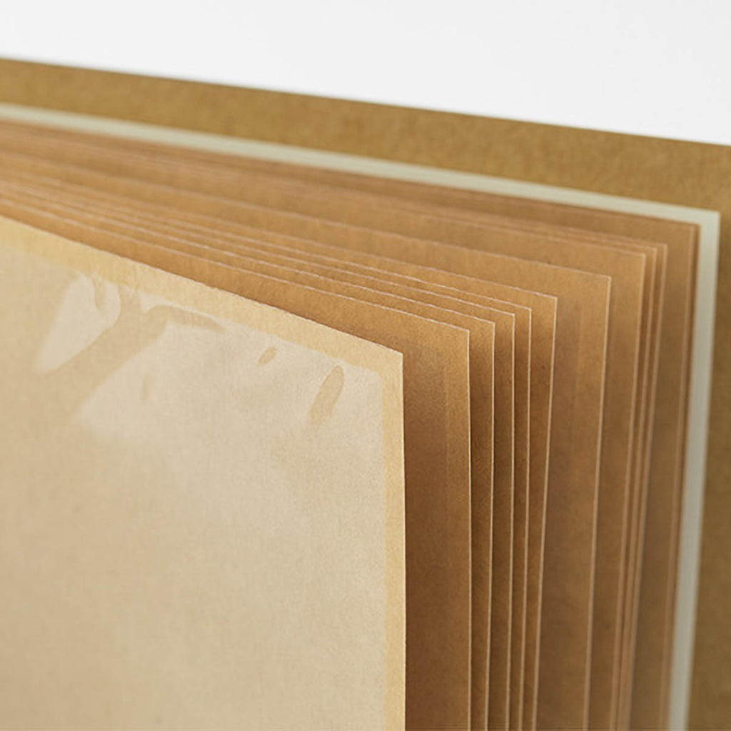 Das Notizbuch vereint verschiedene Papiersorten – von glatt schreibendem Weißpapier über kräftiges Kraftpapier bis hin zu Aquarellpapier – sowie integrierte Taschen und Hüllen. Eine robuste, kunststoffverstärkte Deckseite fasst die Blätter ein, die einzeln per Hand mit einer Spiralbindung verbunden werden. Es eignet sich ideal zum freien Schreiben, Skizzieren oder Aufbewahren kleiner Erinnerungsstücke unterwegs.