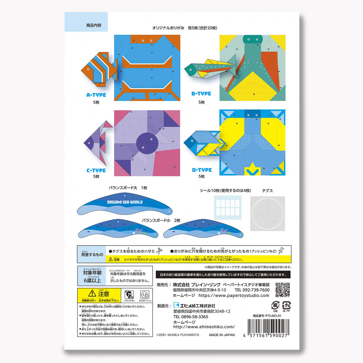 Das Set verbindet das Falten von tropischen Fischen aus dekorativ bedruckten Origamipapieren mit der Möglichkeit, die fertigen Modelle als Mobilé aufzuhängen. Die farbigen Muster sorgen für ansprechende Fischformen, die sich ohne Schneiden leicht falten lassen. Die beiliegenden Elemente wie Balanceplatten, Schnur und Anleitung ermöglichen eine unkomplizierte Gestaltung eines kleinen Raumdekorationsstücks.