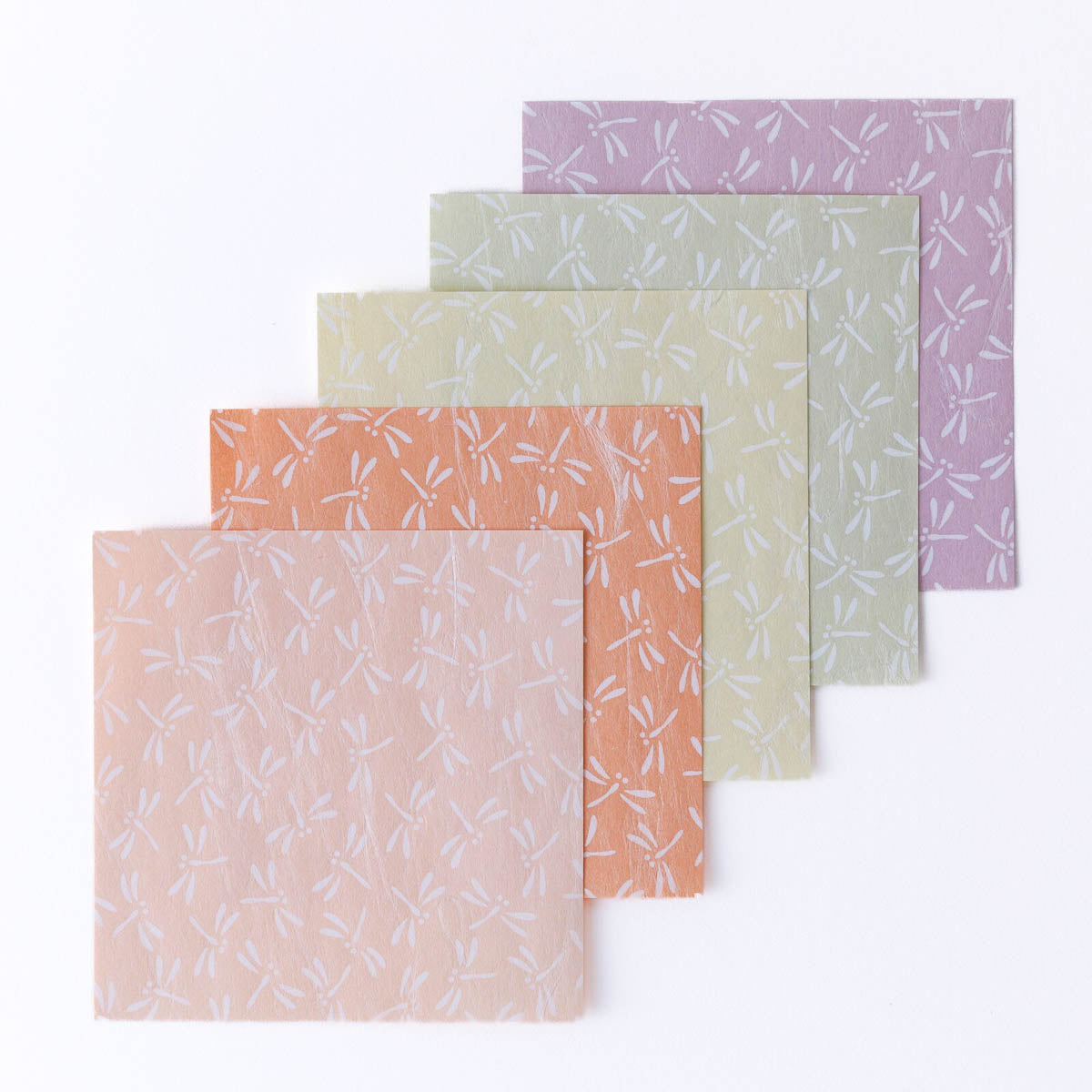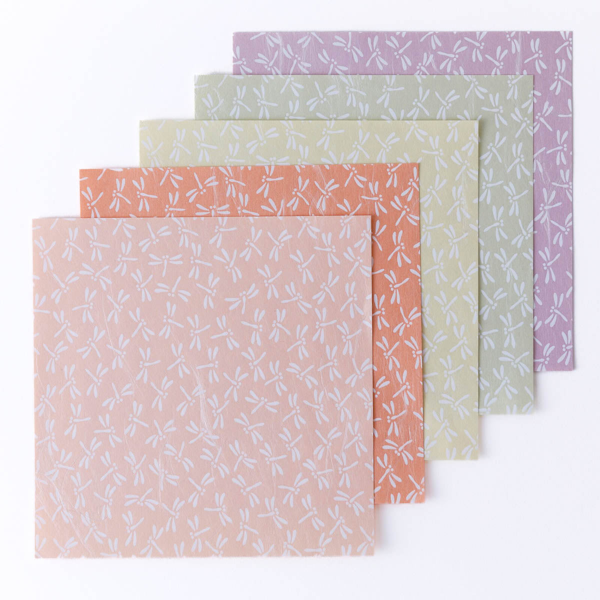Origamipapier aus hochwertigem japanischem Washi mit angenehmer Haptik und Libellen-Motiv.
