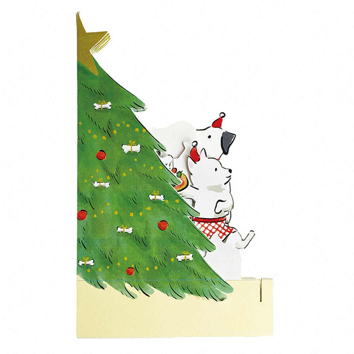 Eine aufklappbare Karte mit fröhlichen Tiere, die gemeinsam um den Weihnachtsbaum tanzen – ein bezauberndes Motiv für Katzen- und Hundefreunde. Sie wird mit passendem Umschlag geliefert und eignet sich ideal als liebevoller Weihnachtsgruß.