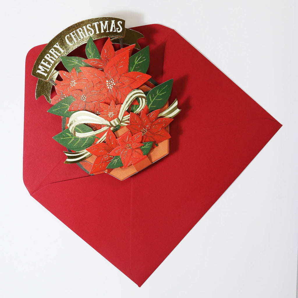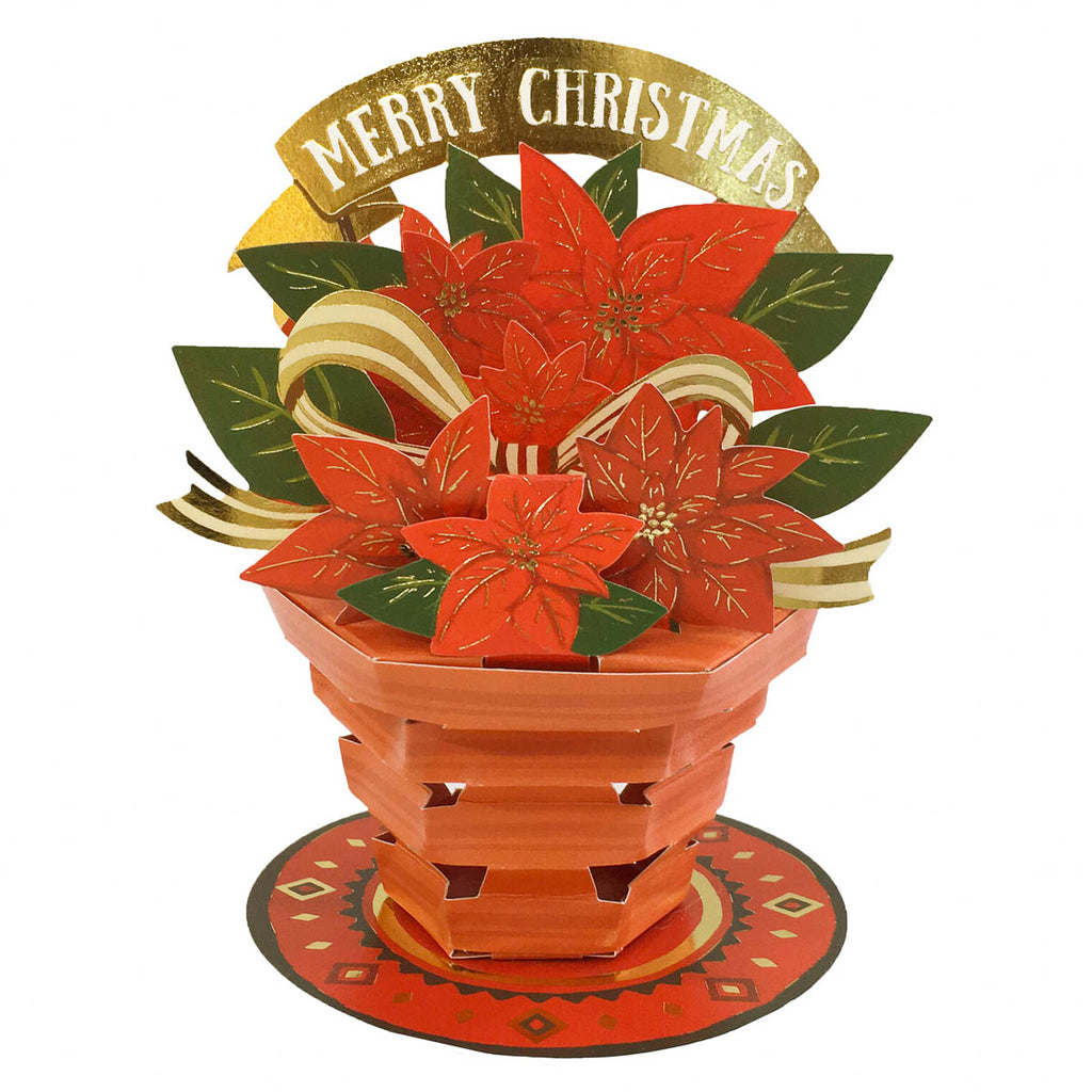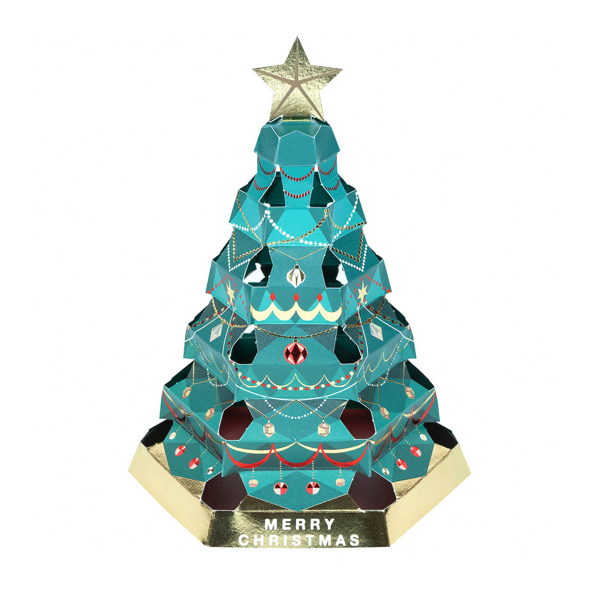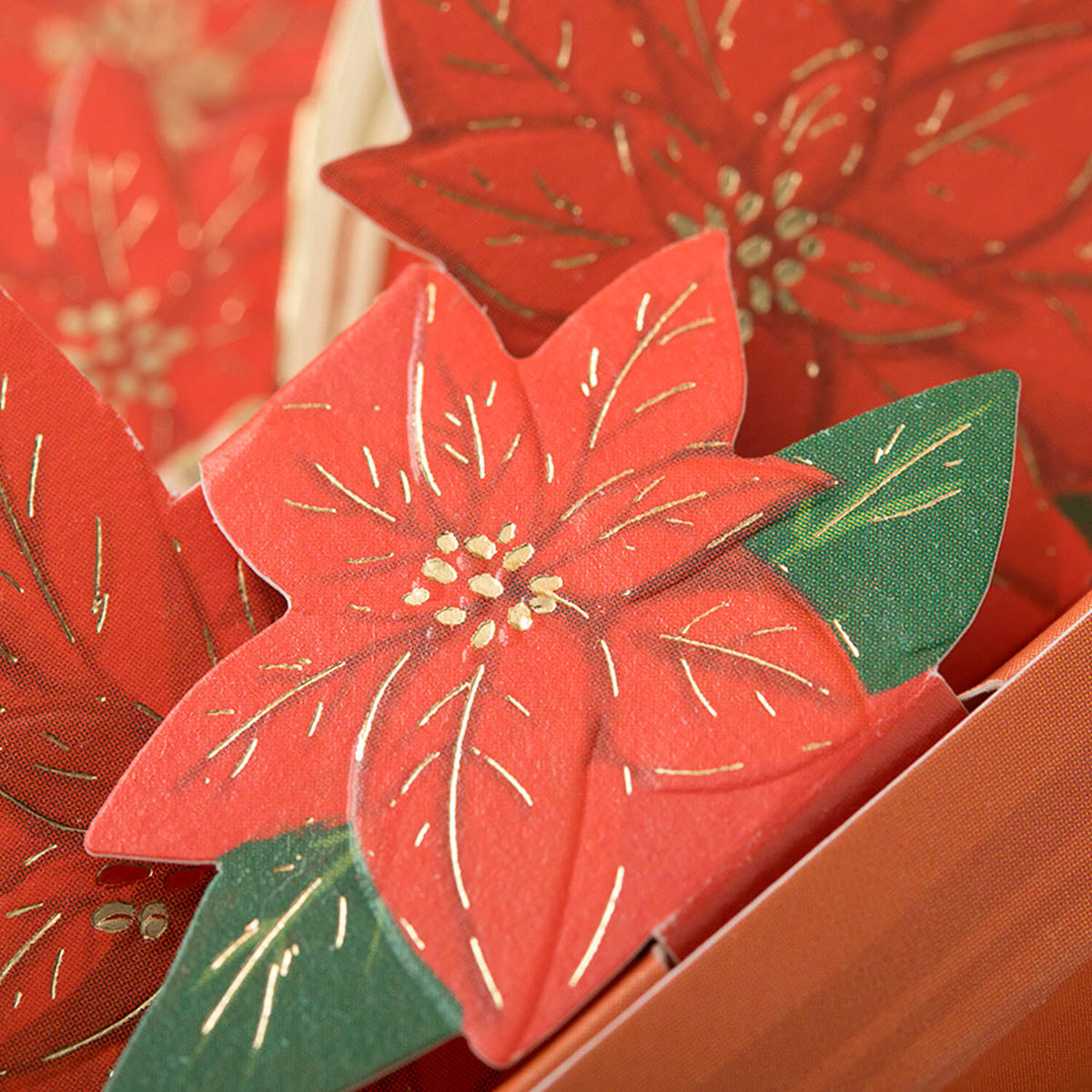 Die Pop-up-Karte entfaltet sich beim Ziehen zu einem festlichen Weihnachtsbaum oder Weihnachtsstern. Goldfolien-Details verleihen der Karte eine edle Note – ideal für besondere Weihnachtsgrüße. (Mit Umschlag)