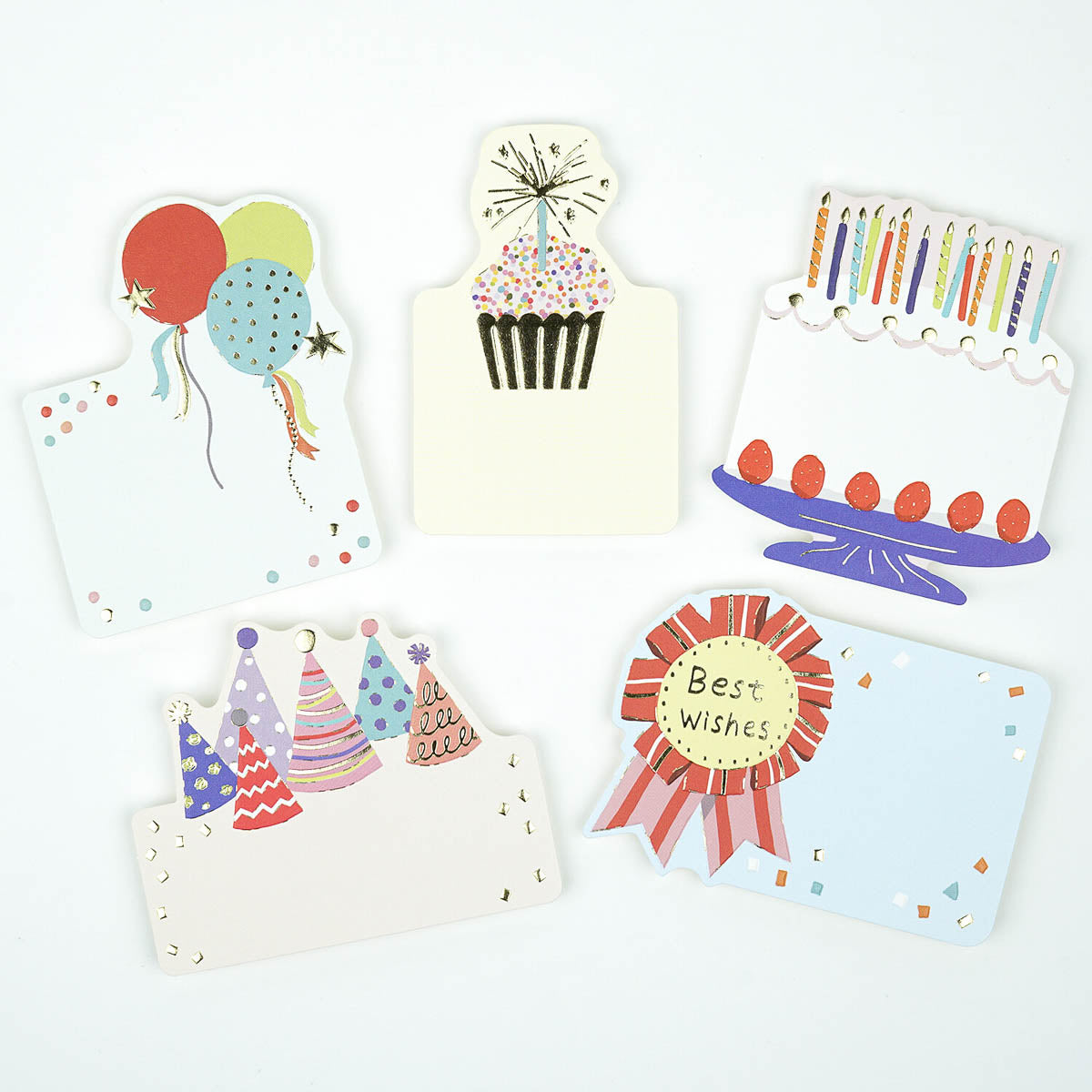 Fünf verschiedene Grußkarten, passend für Glückwünsche zu verschiedenen Anlässen, sind in diesem Set enthalten.