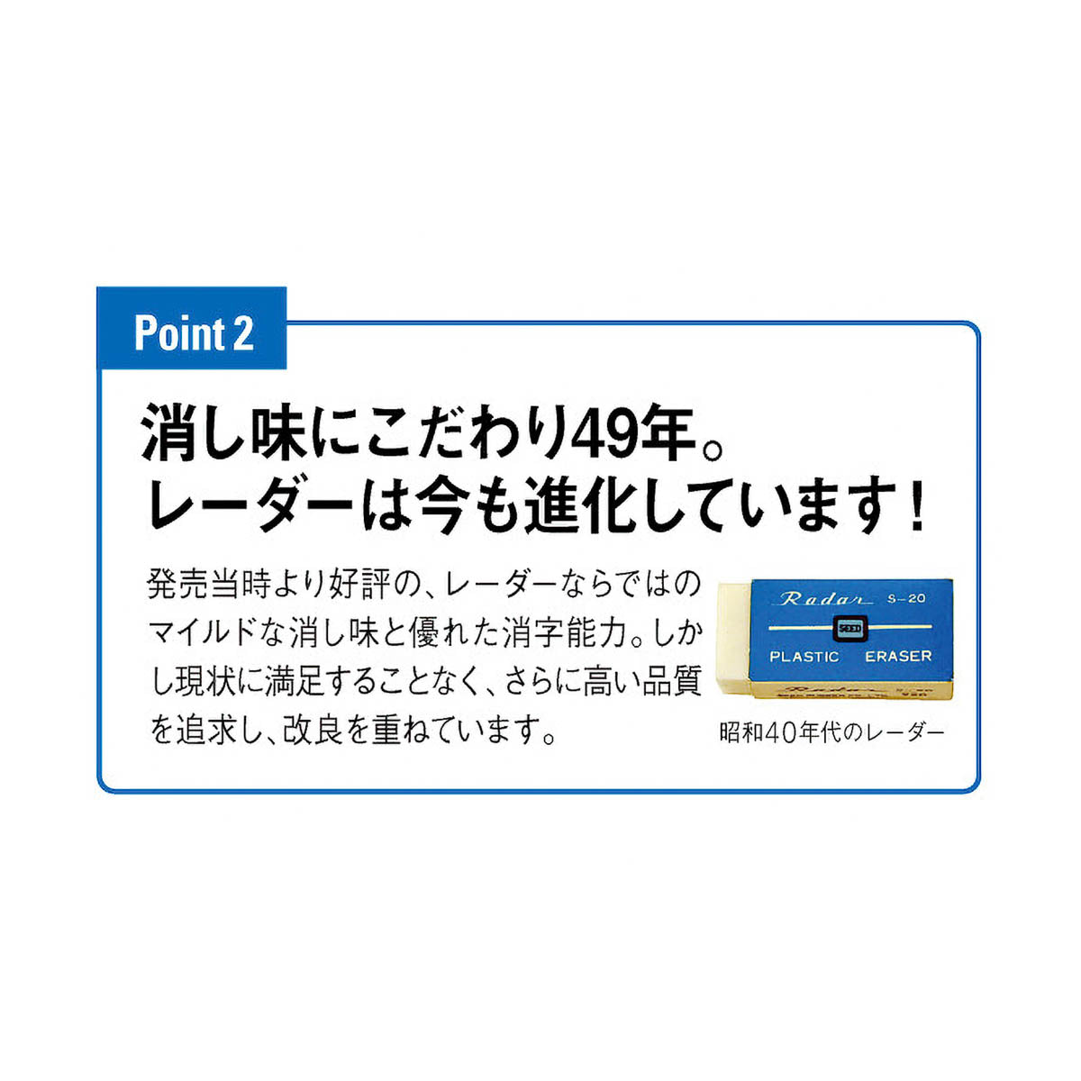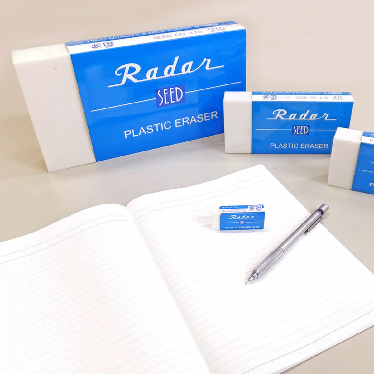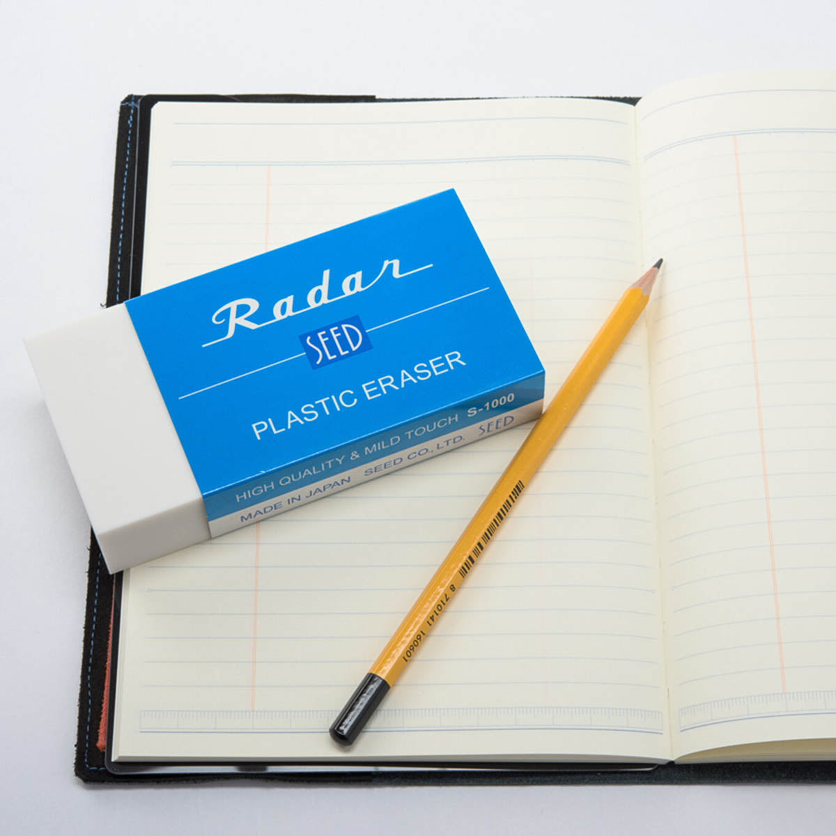 Der klassische Kunststoffradierer, bekannt als der „Radierer mit der blauen Hülle“ in Japan. Er bietet eine ausgewogene, milde Radierwirkung mit hoher Löschleistung und eignet sich für Zeichnen, Schreiben und den täglichen Büro- oder Schulgebrauch. Die spezielle Papierhülle verteilt den Druck gleichmäßig und hilft, ein Abbrechen des Radierers zu vermeiden. Auch die entstehenden Radierreste bleiben kompakt und lassen sich leicht entfernen.