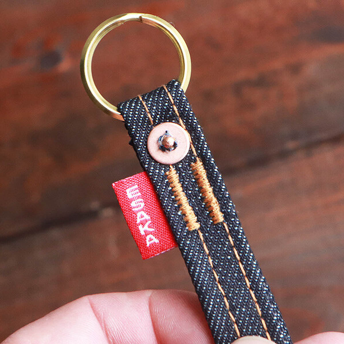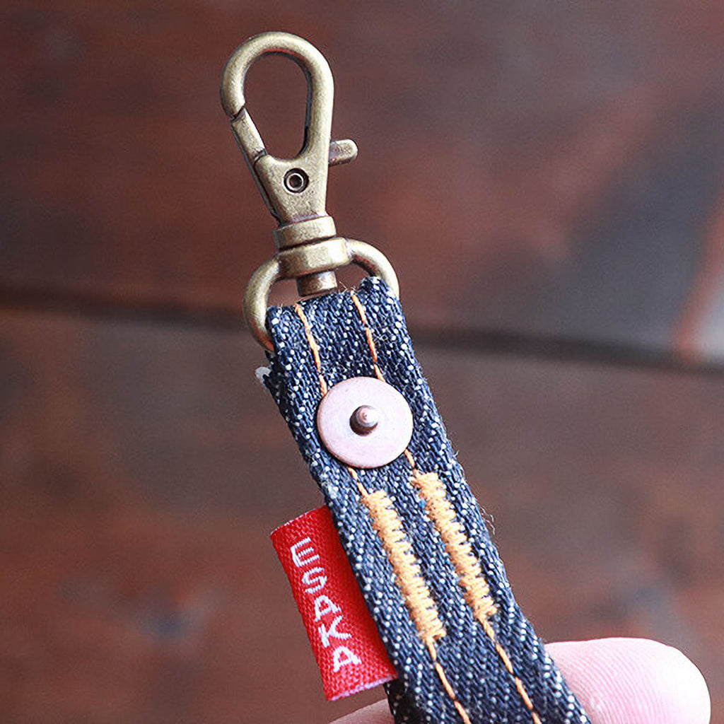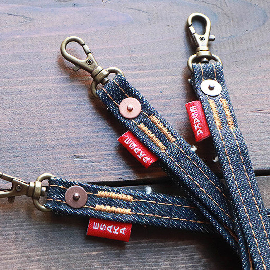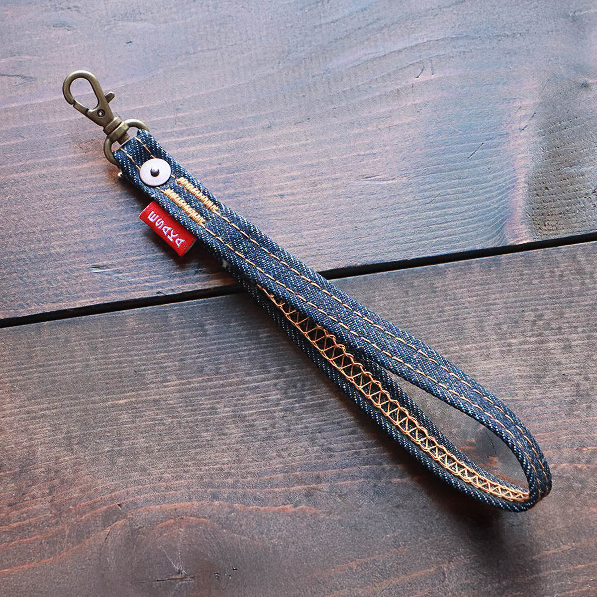Der strapazierfähige Denim-Strap wird in Osaka von Hand gefertigt und lässt sich vielseitig an Schlüssel oder Smartphone befestigen. Gefertigt aus robustem, sanforisiertem 13oz-Okayama-Denim, überzeugt er mit markanter Naht in Orange und detailreichem Design, das an Jeansgürtelschlaufen erinnert. Mit der Nutzung entwickelt das Material eine individuelle Patina und erhält persönlichen Charakter.