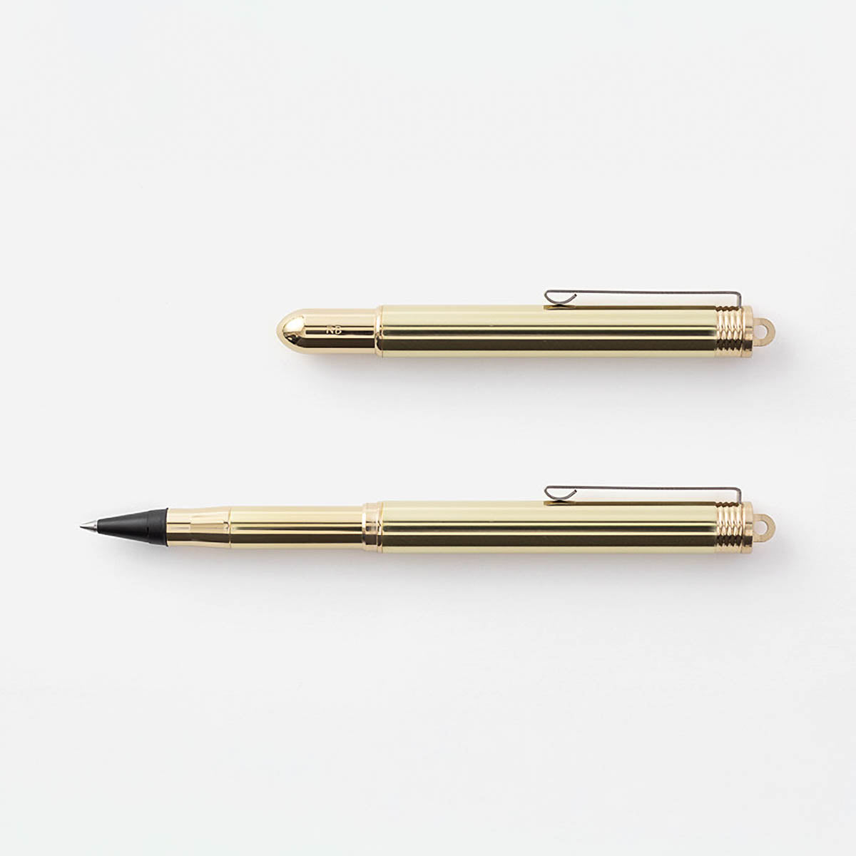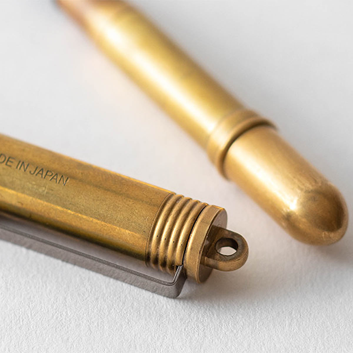 Der Füllhalter aus unbehandeltem Messing ist für den Alltag kompakt konzipiert und erreicht zum Schreiben eine angenehm handliche Länge. Die Oberfläche entwickelt mit der Zeit eine eigene Patina und unterstreicht den zurückhaltenden Charakter des sorgfältig gefertigten Werkzeugs. Die obere Öse ermöglicht das Anbringen eines Bandes und lässt sich bei Bedarf abnehmen, sodass der Stift auch ohne Clip genutzt werden kann.