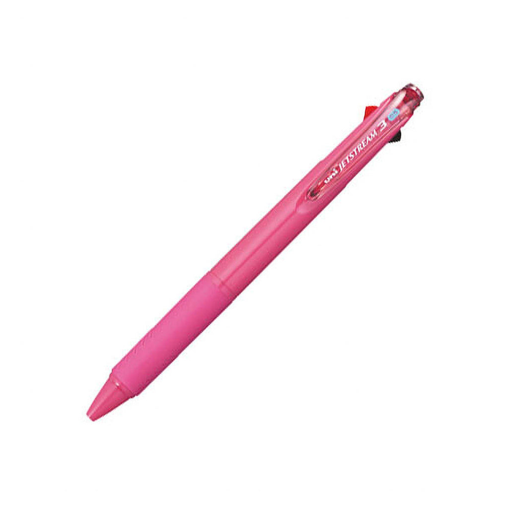 Der Jetstream 3 vereint drei Farben (Schwarz, Blau, Rot) in einem Stift und sorgt dank schnell trocknender Tinte für ein sauberes und angenehmes Schreiberlebnis. Mit ergonomischer Gummigriffzone – ideal auch für Linkshänder. Die Minengröße beträgt 0,5 mm.