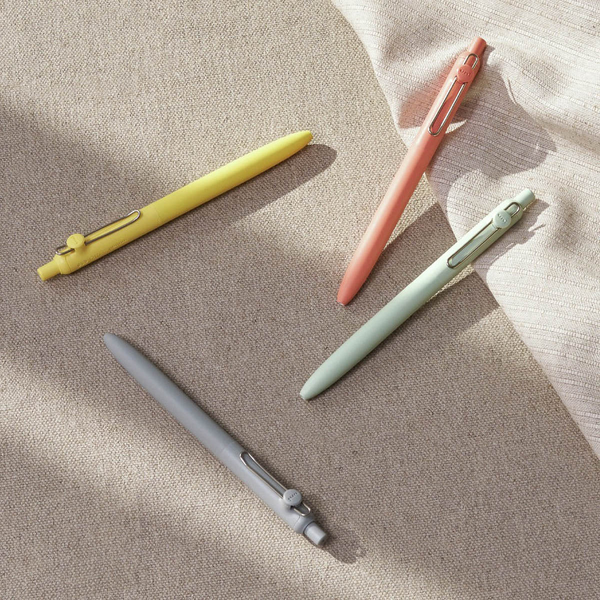 Schlanker Kugelschreiber mit Geltinte die schnell trocknet und kaum verwischt. Eine spezielle Zwischenschicht reduziert den Reibungswiderstand spürbar. Der lange Gummigriff liegt bequem in der Hand und das Gehäuse besteht aus recyceltem Material.