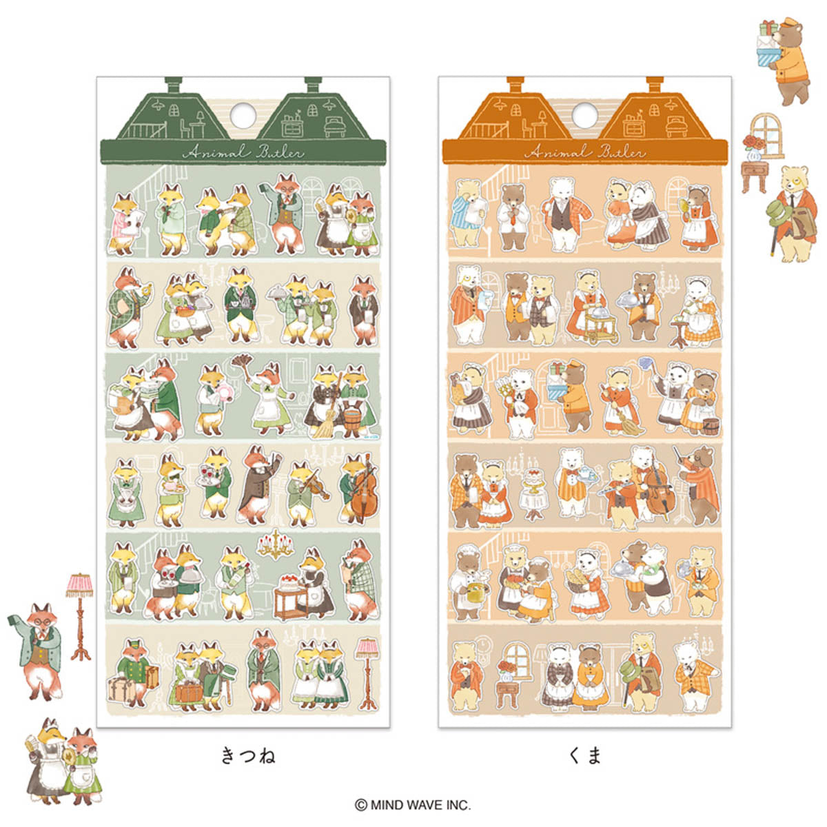 Die Sticker zeigen Tiere in Butler- und Maidrollen, deren Gesten und Haltung liebevoll herausgearbeitet sind. Die feinen Illustrationen eignen sich zum Verzieren von Notizbüchern, Karten oder Planern und setzen dezente, charaktervolle Akzente. Ideal für alle, die detailreiche Tiermotive mit erzählerischem Charme mögen.