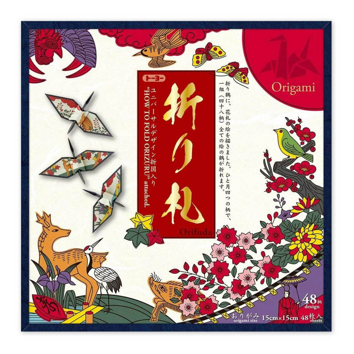 Das Set enthält quadratische Origamibögen, mit denen sich alle 48 Hanafuda-Motive als Kranich falten lassen. Die Kombination aus den farbenreichen Blumen- und Tierdarstellungen der traditionellen Karten und der Form des klassischen Orizuru verleiht den Arbeiten einen besonderen Charakter. Der Name „Orifuda“ verbindet dabei „Origami-Kranich“ und „Hanafuda“.