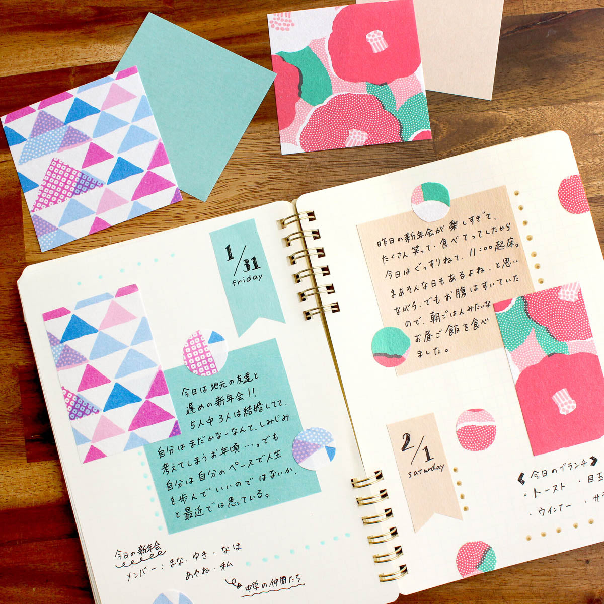Inhalt: Musterpapier: 6 Designs mit je 12 Blatt Mino-Washi: 6 Farben mit je 12 Blatt