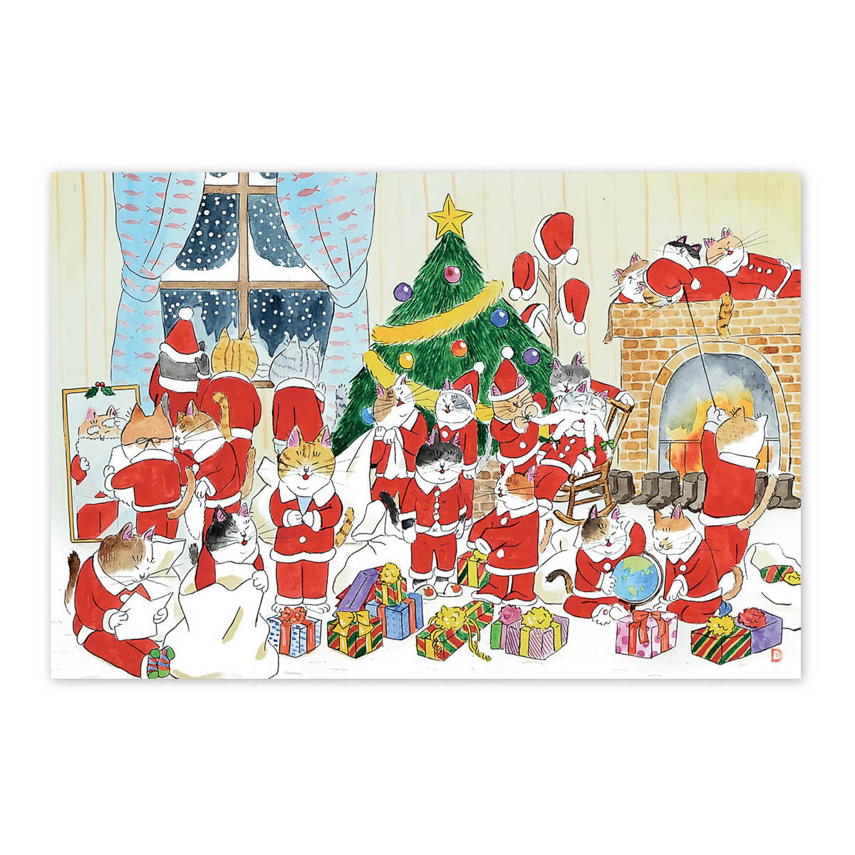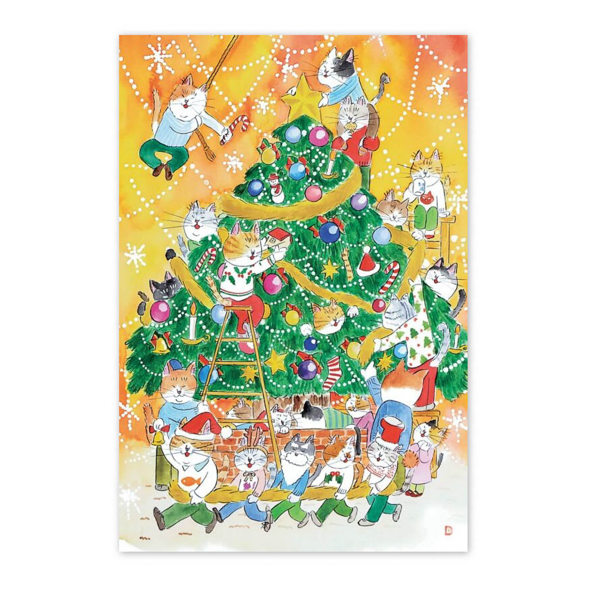 Postkarte mit einem weihnachtlichen Katzenmotiv der Illustratorin Ai Yoshida. Die sanfte, stimmungsvolle Gestaltung eignet sich gut für persönliche Weihnachtsgrüße oder als kleine saisonale Dekoration.