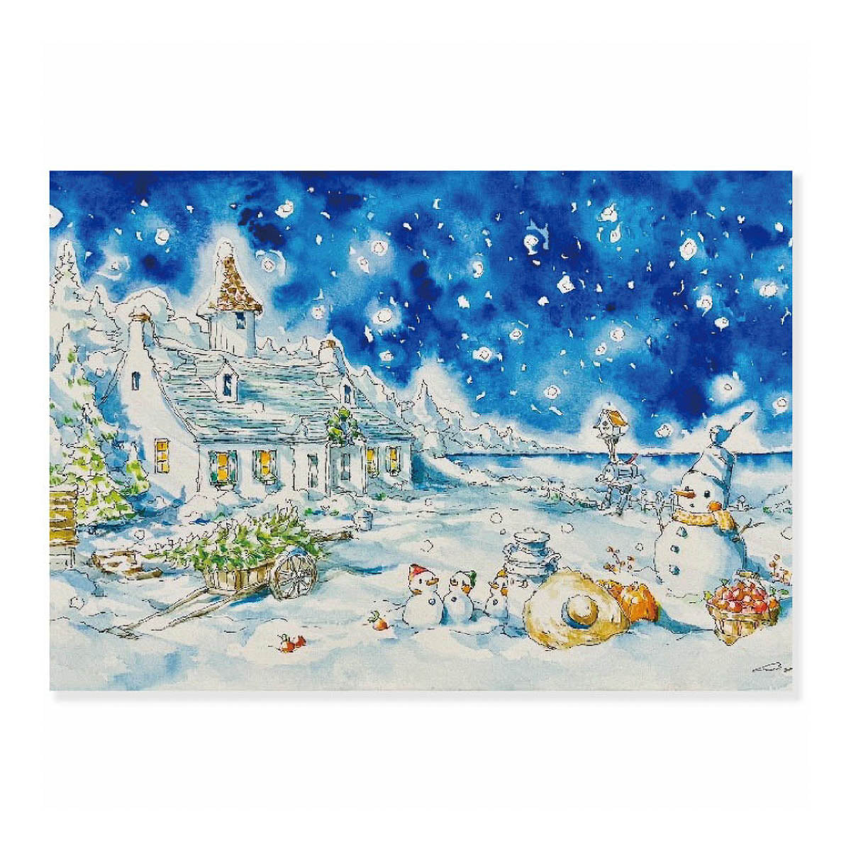 Die Postkarte zeigt eine stimmungsvolle Weihnachtsszene des Künstlers Shinya Uchida. Mit seinem sanften Illustrationsstil fängt sie den Zauber und die Wärme der Weihnachtszeit auf poetische Weise ein – ideal für festliche Grüße oder als Sammlerstück.