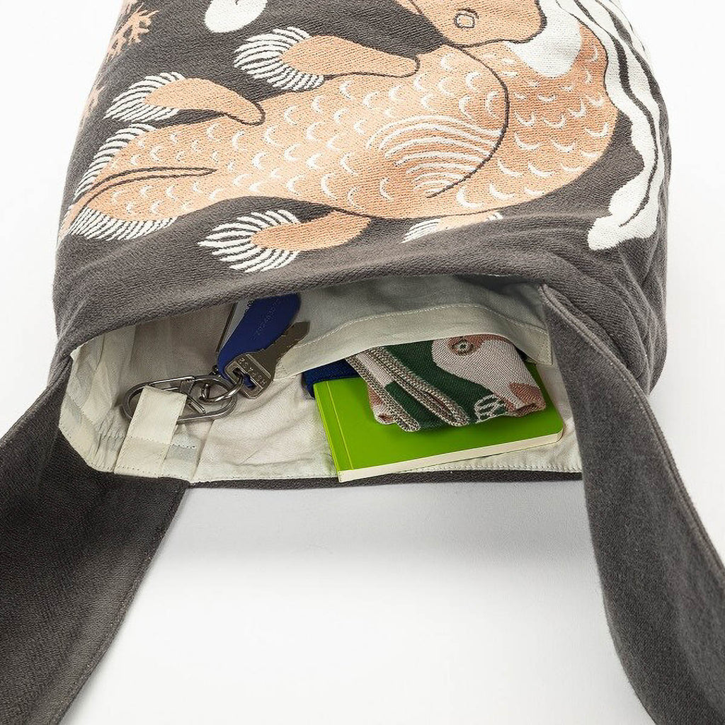 Die moritaMiW Schultertasche verbindet Design mit praktischer Funktion. Gefertigt aus 100 % Baumwolle, ist sie leicht, waschbar und handlich im Gebrauch. Die Tasche zeigt die charakteristischen Illustrationen von Morita MiW, verfügt über ein Innenfutter, eine Innentasche und einen Haken -ideal für Schlüssel, kleine Notizbücher oder Accessoires. Mit ihrem breiten, doppelseitig gemusterten Schulterriemen eignet sie sich perfekt für Alltag, Reise oder Freizeit.
