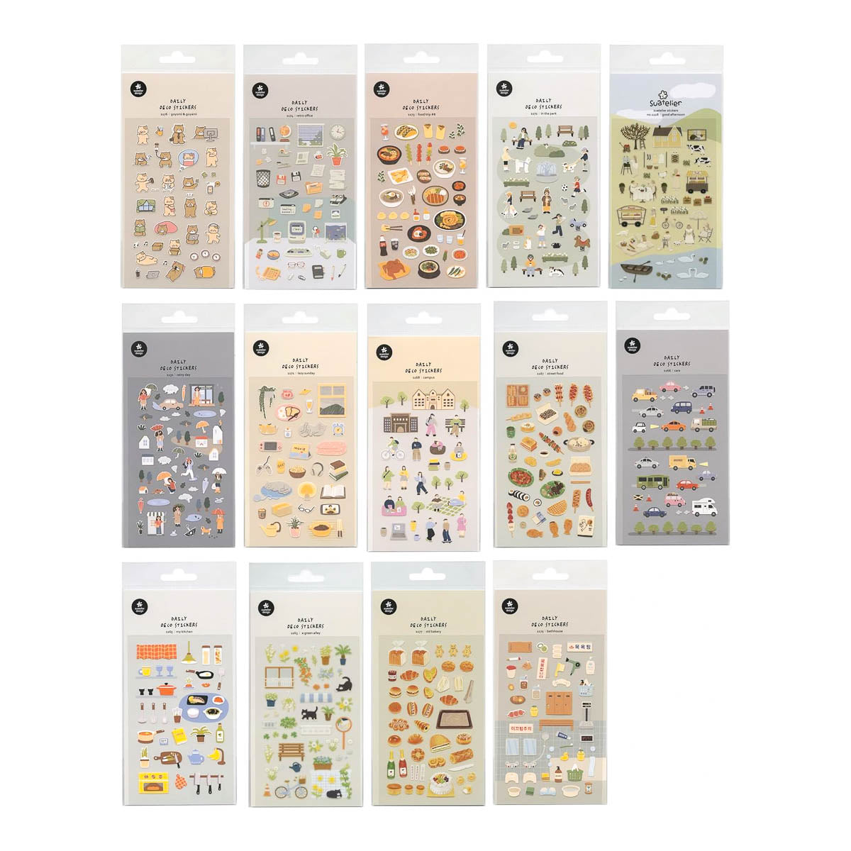 Sticker von der beliebten koreanischen Marke Suatelier, gestaltet mit vielen kleinen Motiven passend zum jeweiligen Thema. Die feinen, charakteristischen Motive eignen sich ideal zum Verzieren von Kalendern, Tagebüchern oder Notizen.