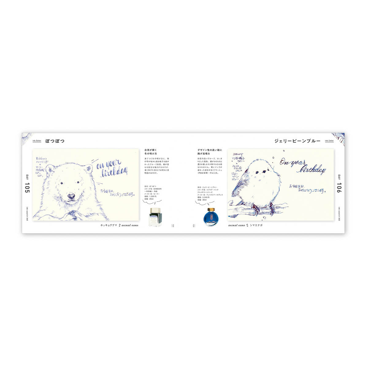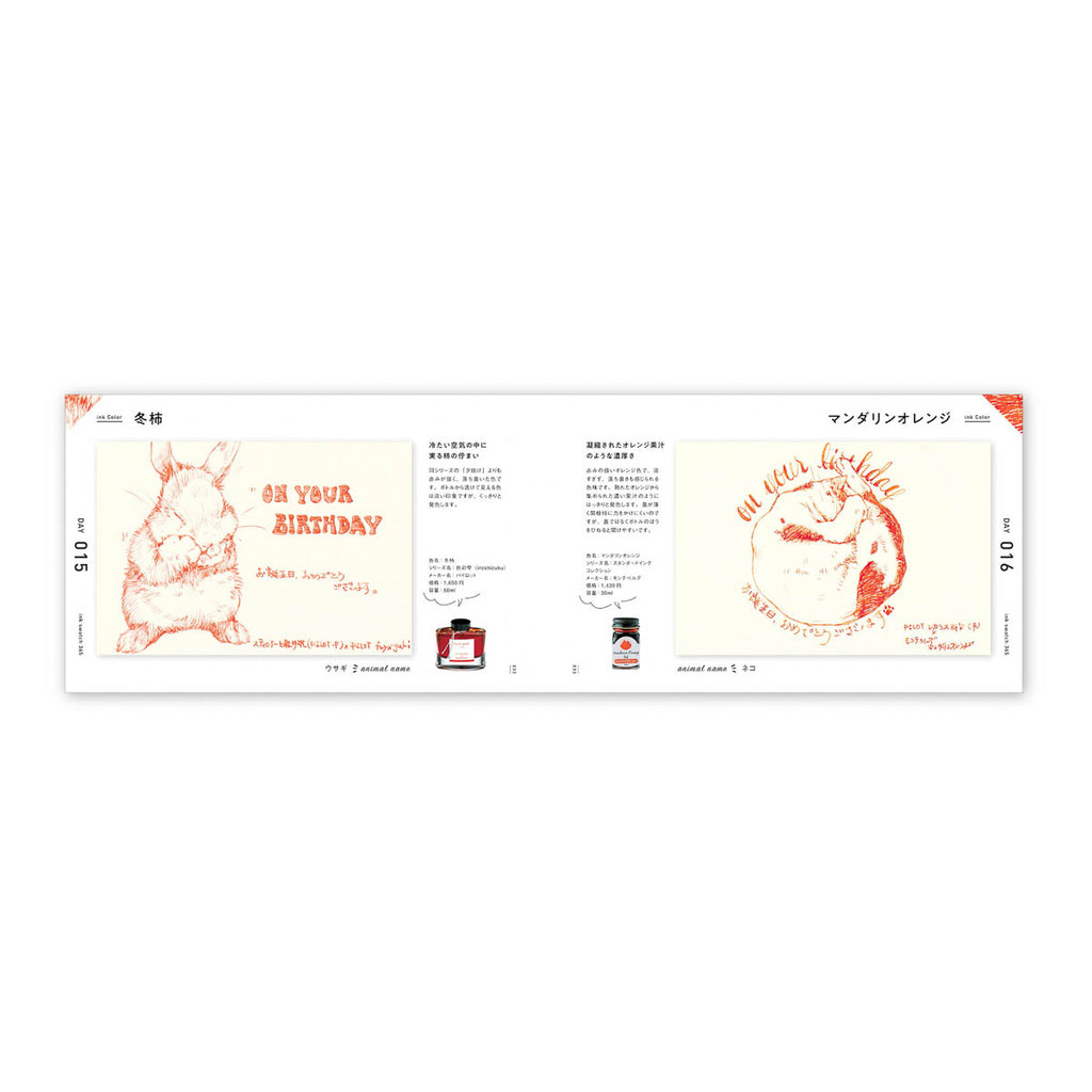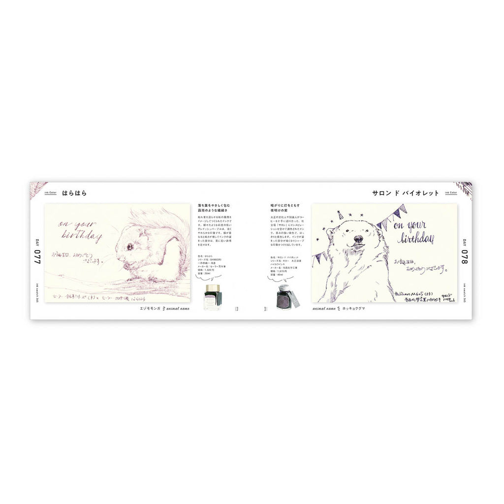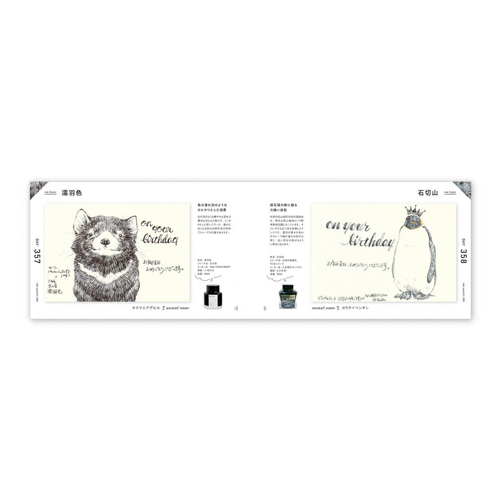 Das Buch versammelt ausgewählte Illustrationen, die über neun Jahre hinweg täglich mit Füllfederhalter und verschiedenen Tinten entstanden sind, und zeigt anhand von 365 Beispielen die Vielfalt von rund 1.200 Farbtönen. Die feinen Darstellungen von Tieren und Pflanzen vermitteln, wie unterschiedlich Tinten wirken können und welches Ausdruckspotenzial im Schreiben und Zeichnen mit Füllhaltern steckt. Ergänzende Inhalte wie ein Gespräch mit einer Stationery-Buyer und Hinweise zur Gestaltung eigener Tinten runden das Werk ab.
