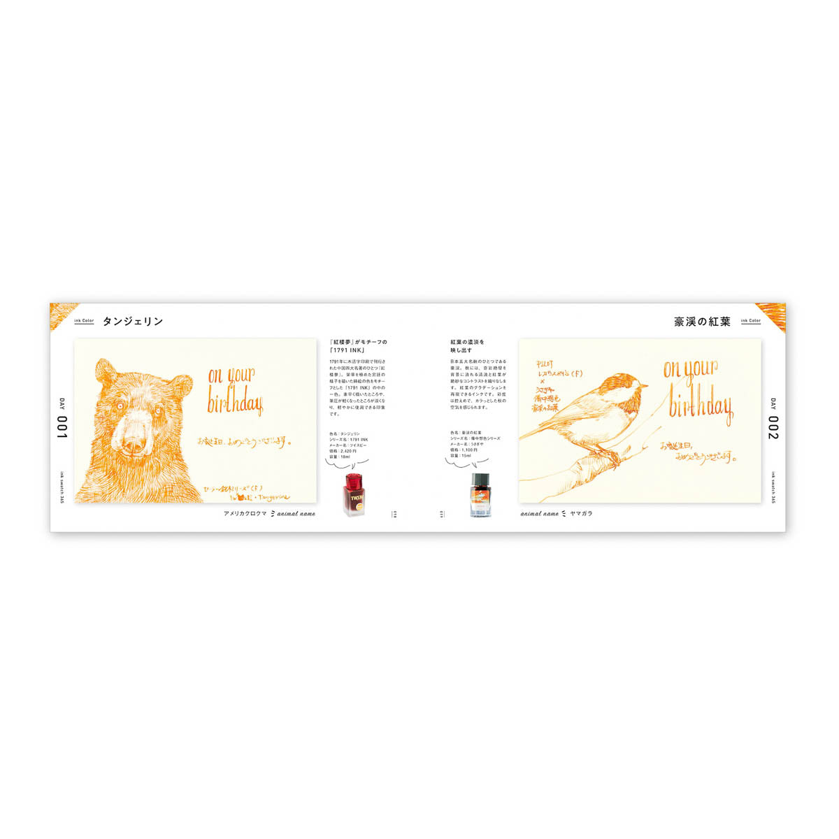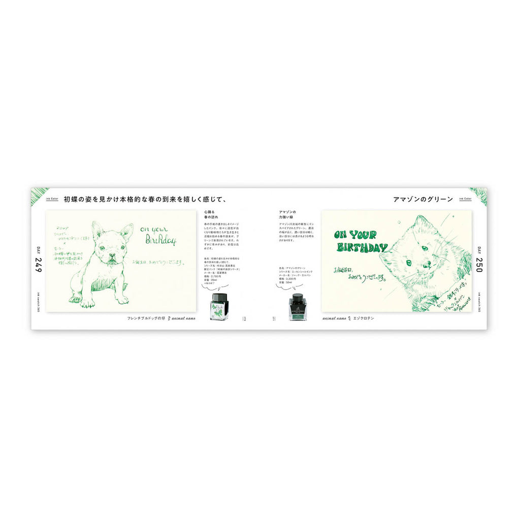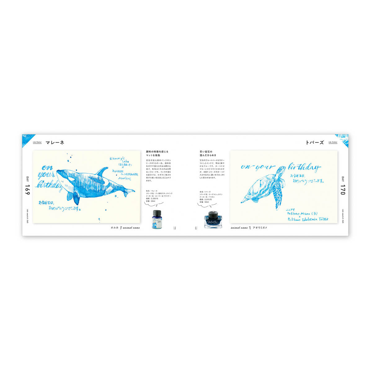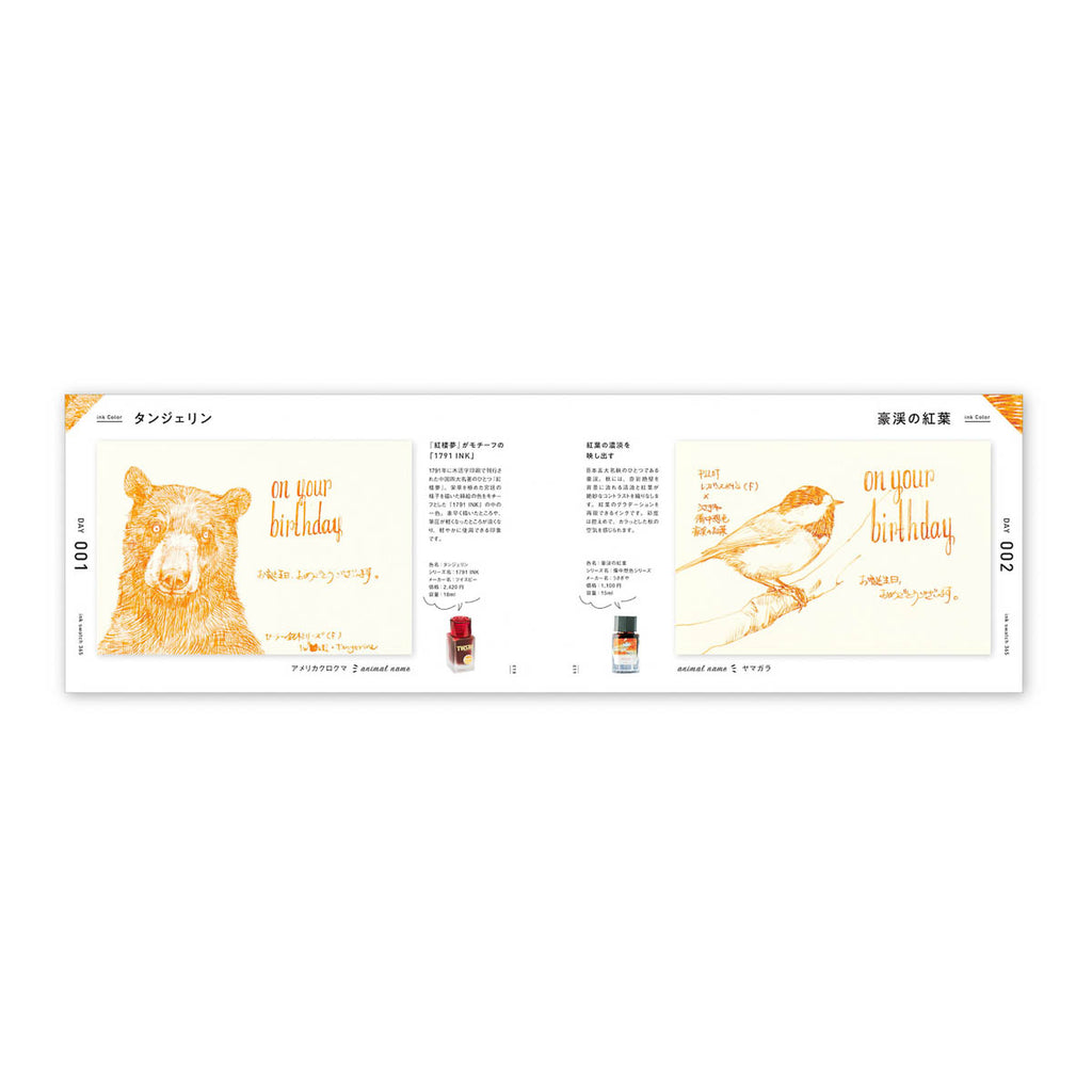 Das Buch versammelt ausgewählte Illustrationen, die über neun Jahre hinweg täglich mit Füllfederhalter und verschiedenen Tinten entstanden sind, und zeigt anhand von 365 Beispielen die Vielfalt von rund 1.200 Farbtönen. Die feinen Darstellungen von Tieren und Pflanzen vermitteln, wie unterschiedlich Tinten wirken können und welches Ausdruckspotenzial im Schreiben und Zeichnen mit Füllhaltern steckt. Ergänzende Inhalte wie ein Gespräch mit einer Stationery-Buyer und Hinweise zur Gestaltung eigener Tinten runden das Werk ab.