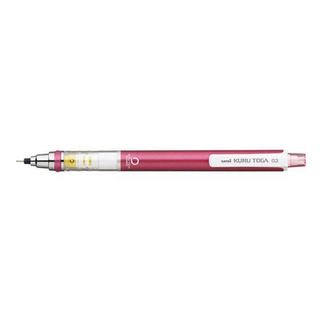 Der uni Kuru Toga 0,3 mm ist ein Druckbleistift mit dem speziellen Kuru-Toga-Mechanismus, der die Mine beim Schreiben automatisch dreht. Dadurch bleibt die Spitze gleichmäßig scharf, liefert klare Linien und kratzt weniger auf dem Papier. Das saubere Schriftbild bleibt stabil, ohne überschüssigen Graphit Abrieb.