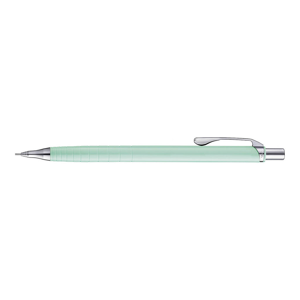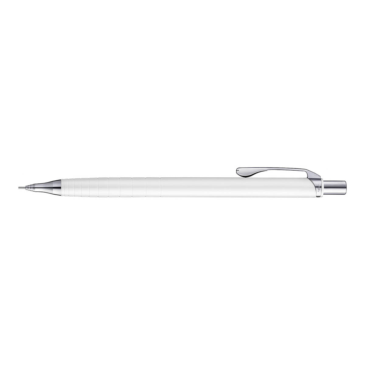 Druckbleistift mit feiner 0,3 mm Mine, die von einem Schutzrohr umhüllt wird. Dieses zieht sich beim Schreiben automatisch zurück, sodass die Mine stets geschützt bleibt und nicht bricht – selbst bei höherem Druck. Der Stift gleitet sanft über das Papier, ohne es zu zerkratzen. Praktisch ausgestattet mit einem Radiergummi unter der Kappe und zwei Ersatzminen.