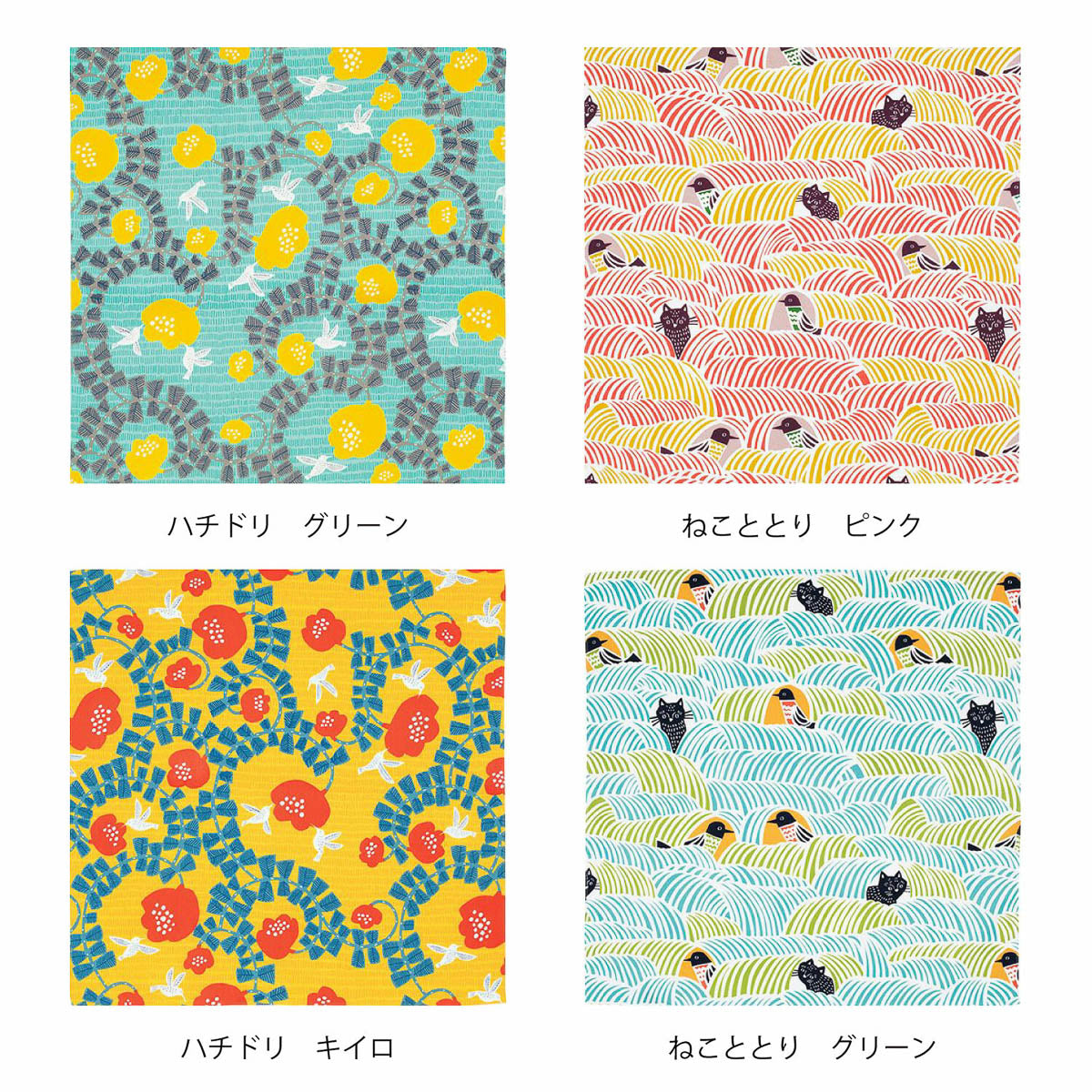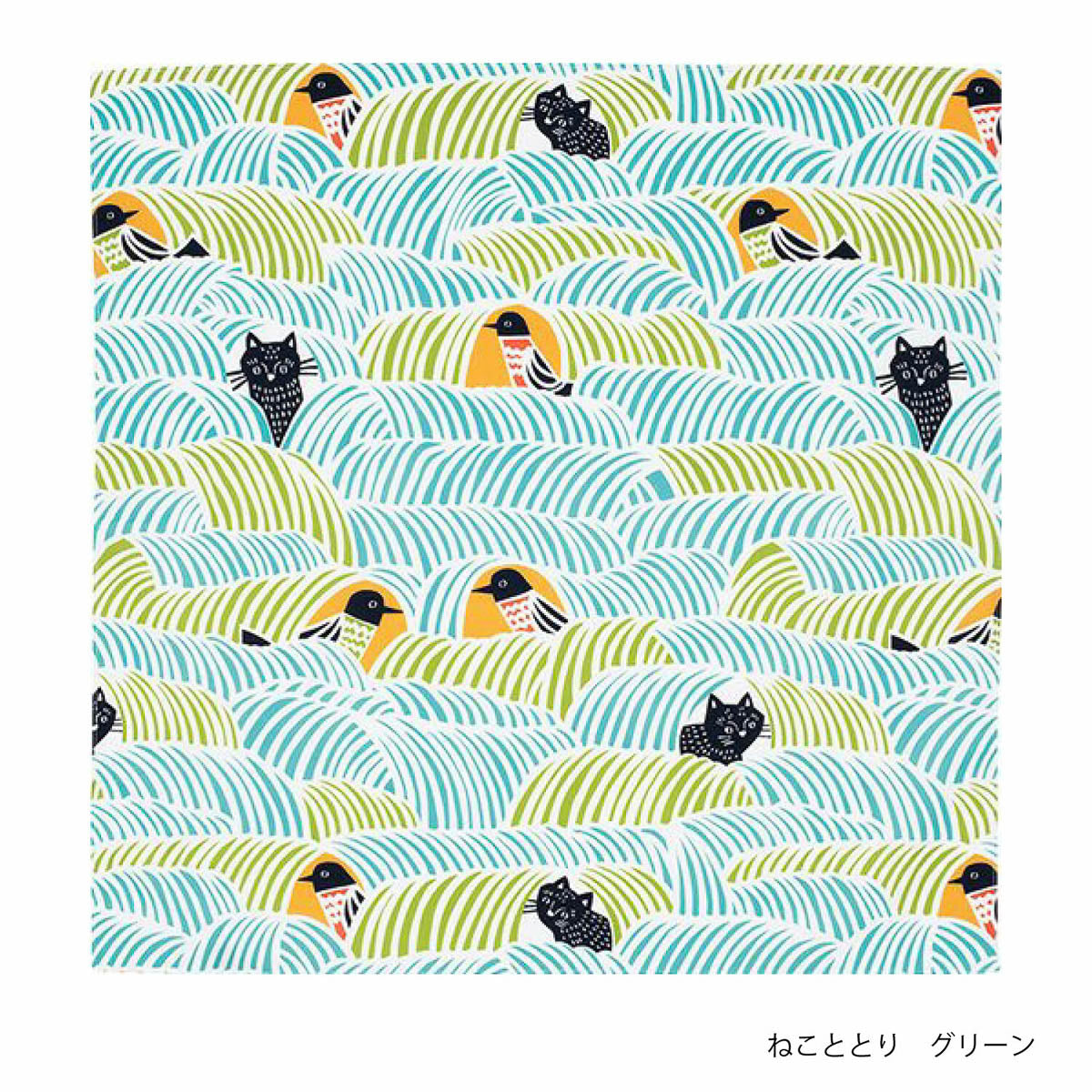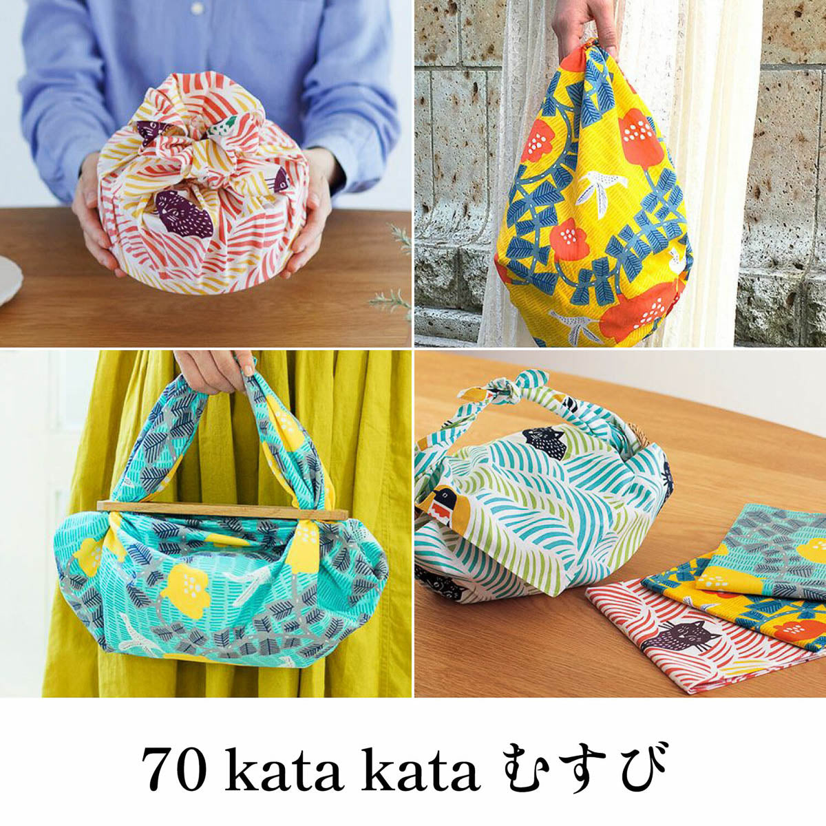 Furoshiki der Serie kata kata musubi, gestaltet vom Künstlerduo kata kata – den beiden Katazome-Artists Takeshi Matsunaga und Chie Takai. Ihre charakteristischen Tiermotive wirken wie kleine Geschichten auf Stoff und werden in traditionellen Färbeverfahren umgesetzt. Das farbenfrohe Tuch eignet sich vielseitig zum Verpacken, Tragen oder Dekorieren und bringt eine warme, erzählerische Note in den Alltag.