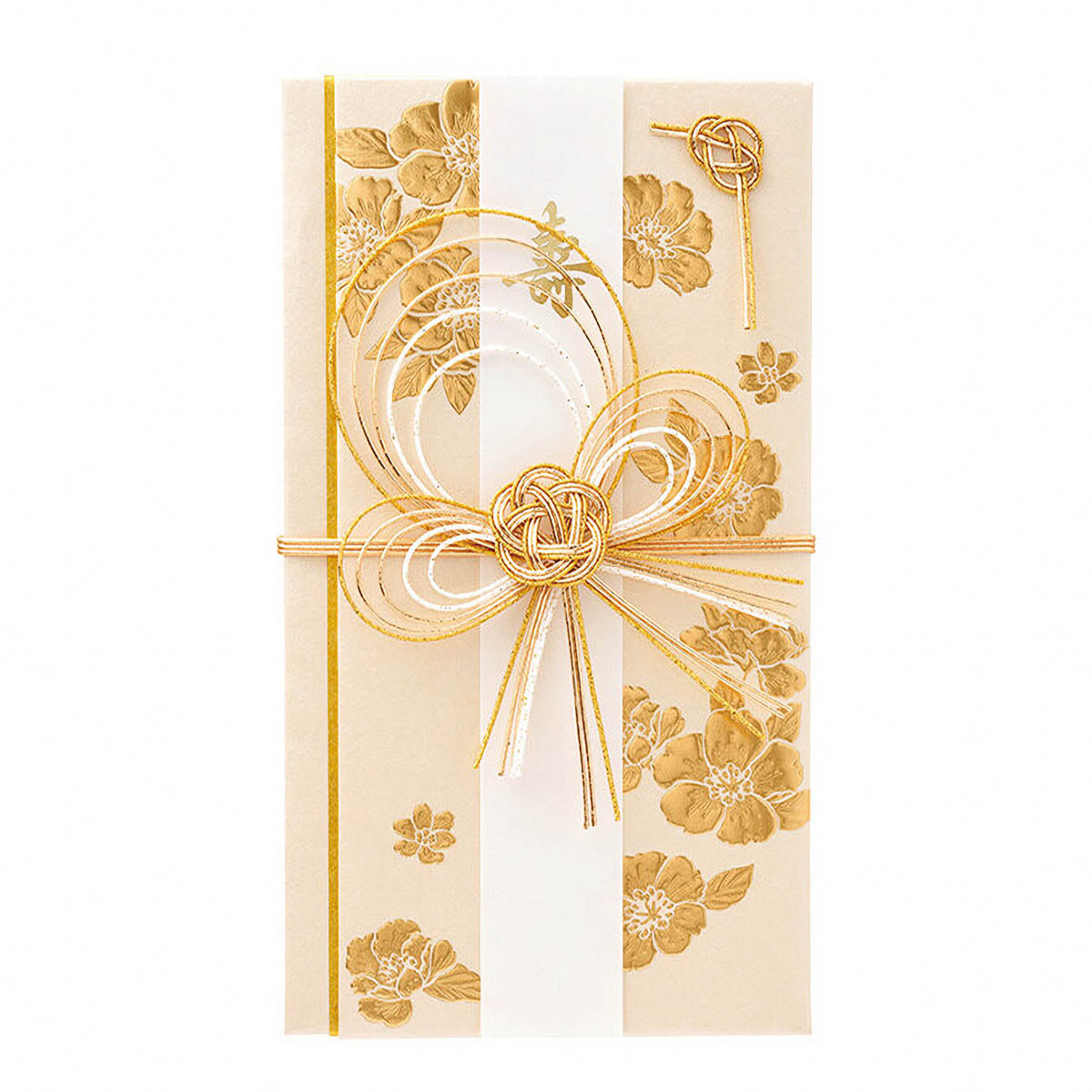 Der Umschlag erinnert in seiner Gestaltung an feine Seidenstoffe und zeigt eine dezente, perlglänzende Oberfläche. Die geprägte Goldfolie verleiht dem Design eine klare Struktur und eine hochwertige Anmutung. Das Modell eignet sich gut für festliche Geldgeschenke zu besonderen Anlässen.
