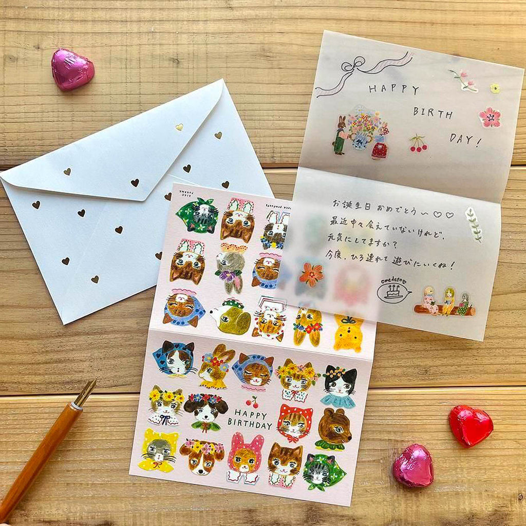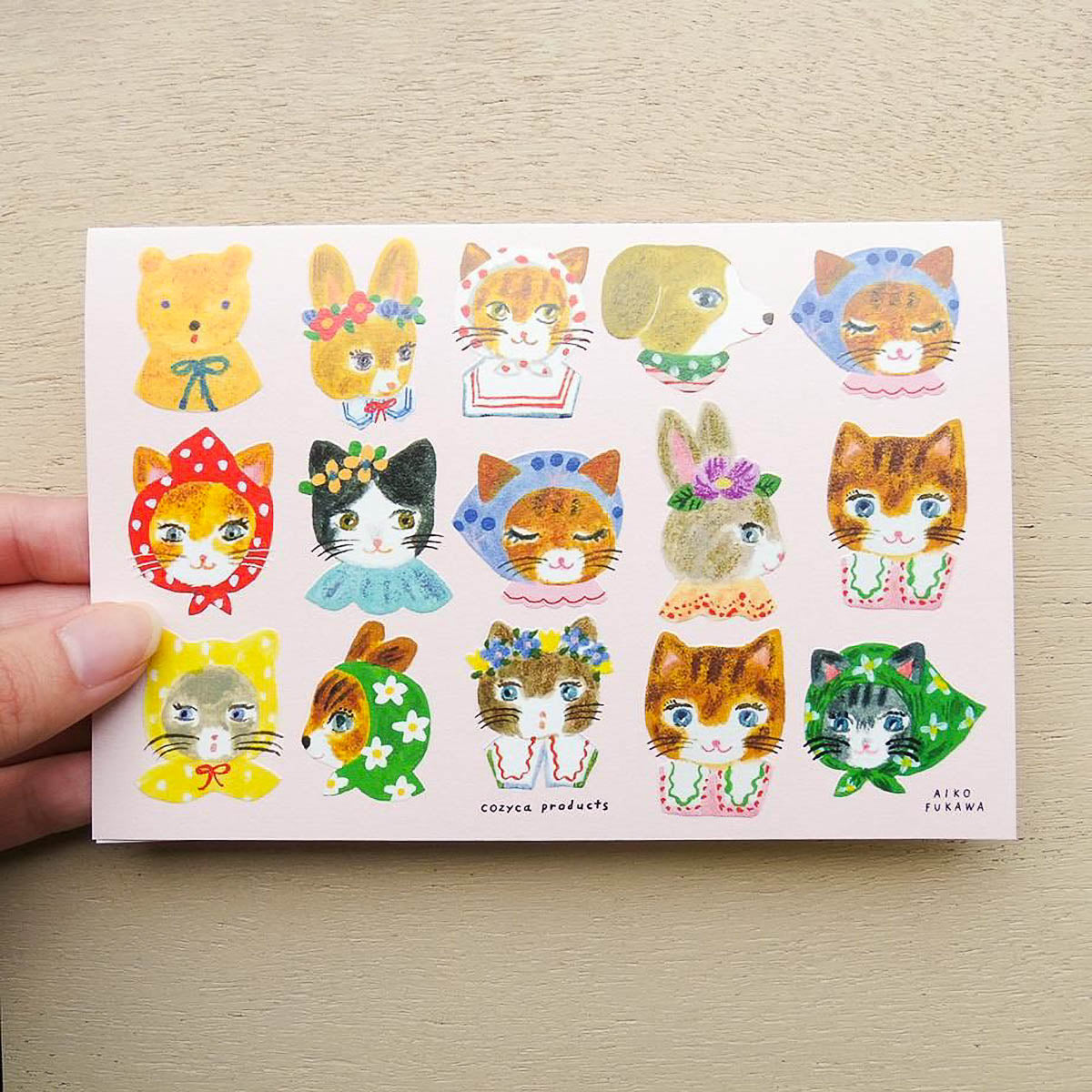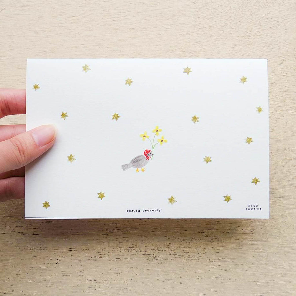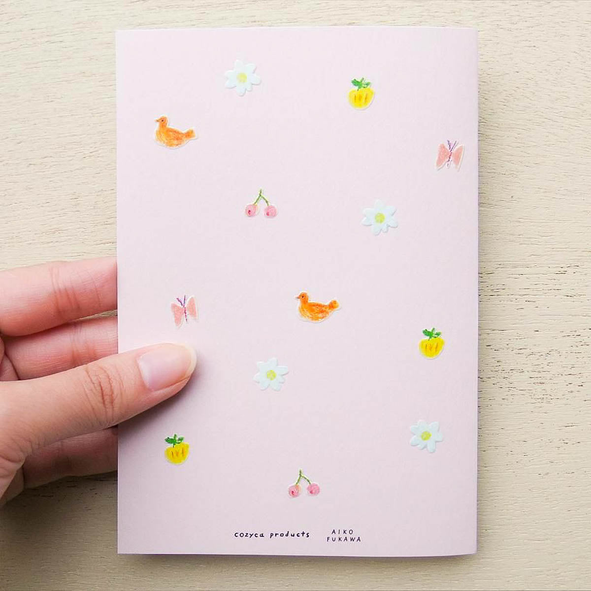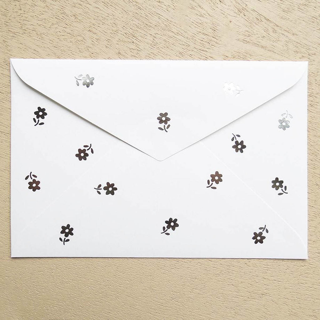 Briefpapier-Set von Aiko Fukawa, das mit liebevoll gezeichneten Blumen und Tieren gestaltet ist. Es enthält Briefbögen sowie passende Umschläge.