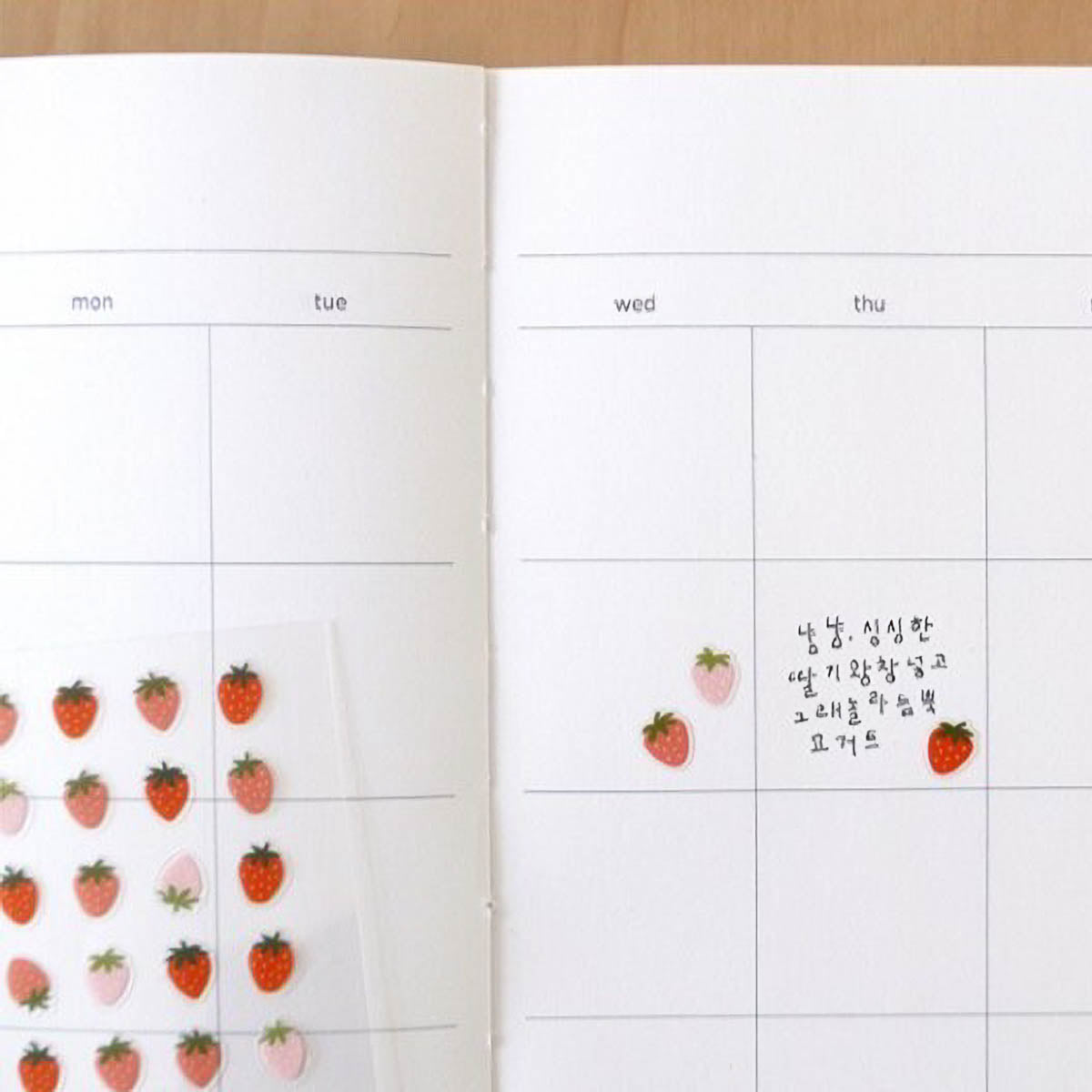 Die Sticker des koreanischen Labels Suatelier enthalten zahlreiche kleine Icons, die thematisch sortiert sind und sich ideal zum Markieren oder Dekorieren von Notizbüchern eignen. Die feinen Motive lassen sich vielseitig einsetzen und setzen dezente Akzente im Planer oder Tagebuch. Eine praktische Auswahl für alle, die kleine Illustrationen lieben.