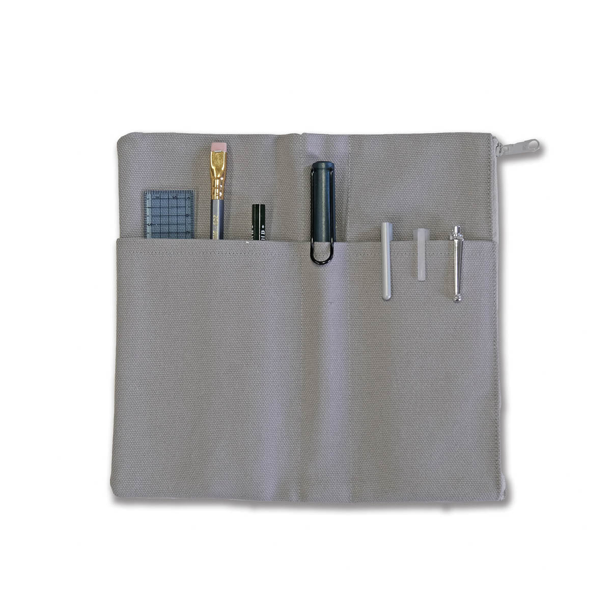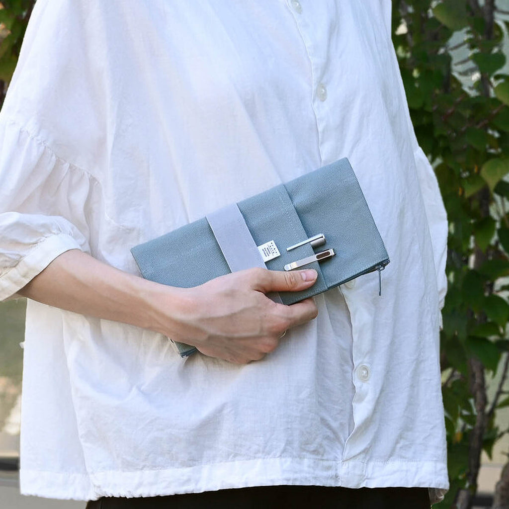 Die RO-BIKI NOTE Canvas Cover – besteht aus angenehm weichem Baumwollstoff und überzeugt durch sein schlichtes, funktionales Design. Drei unterschiedlich große Außentaschen sowie ein Reißverschlussfach innen bieten vielseitige Aufbewahrungsmöglichkeiten für Stifte, Sticker und andere Kleinigkeiten. Dank des individuell verstellbaren Gummibands lassen sich bis zu fünf RO-BIKI NOTE Hefte sicher fixieren. Ideal für unterwegs – kompakt, praktisch und stilvoll zugleich.