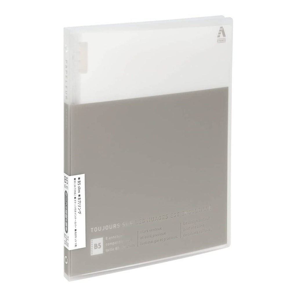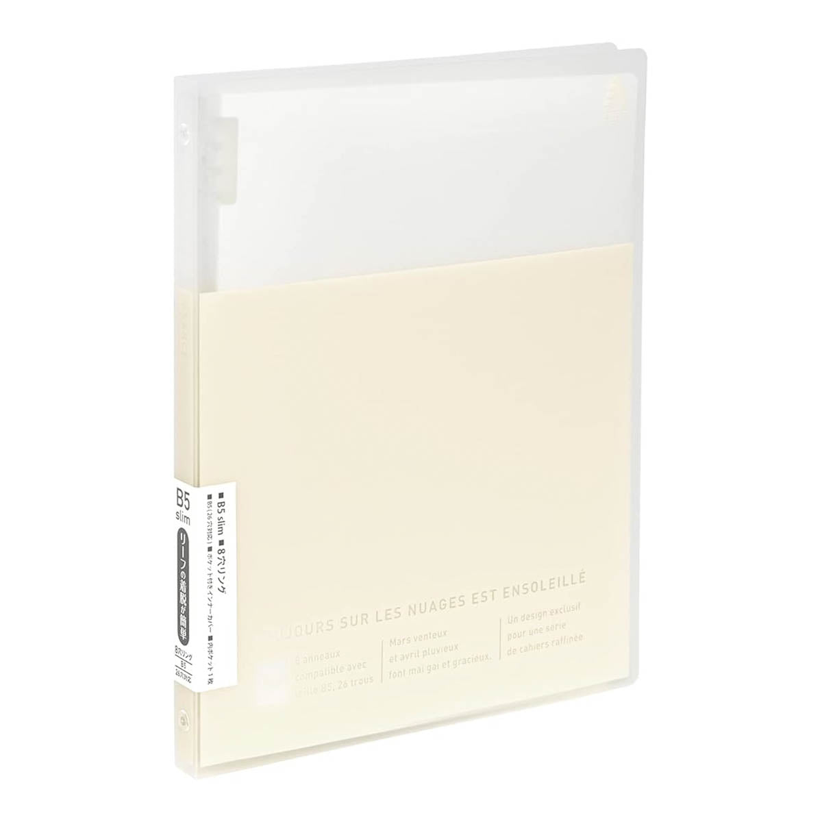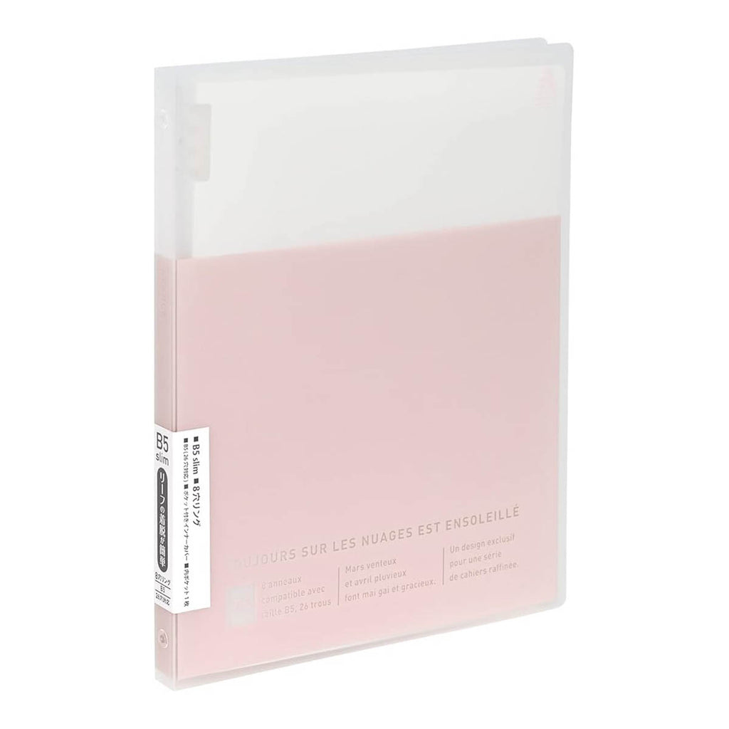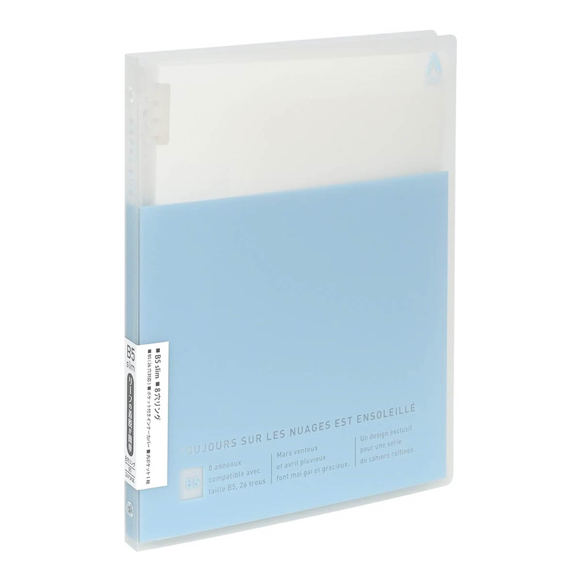 Der leichte Binder kombiniert eine transparente Umschlagfläche mit dezenten, sanften Farbtönen für einen klaren und modernen Eindruck. Die Innenseite ist mit einer praktischen Tasche ausgestattet, in der sich Notizen oder Haftmarker unkompliziert verstauen lassen.