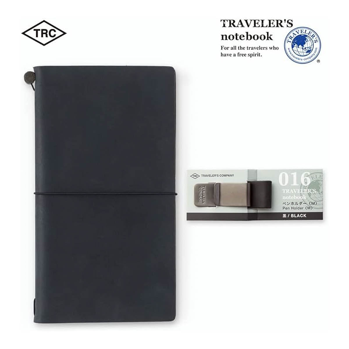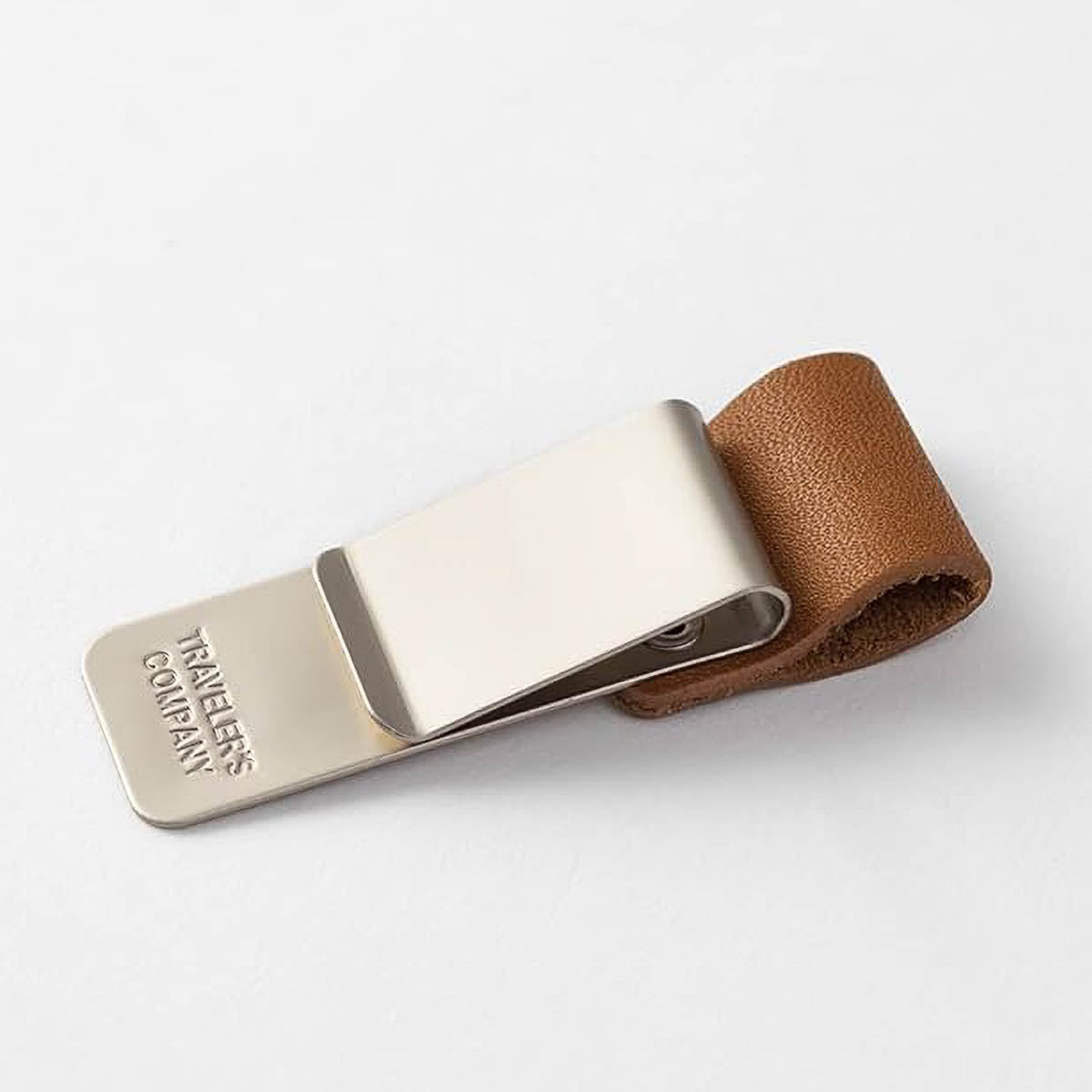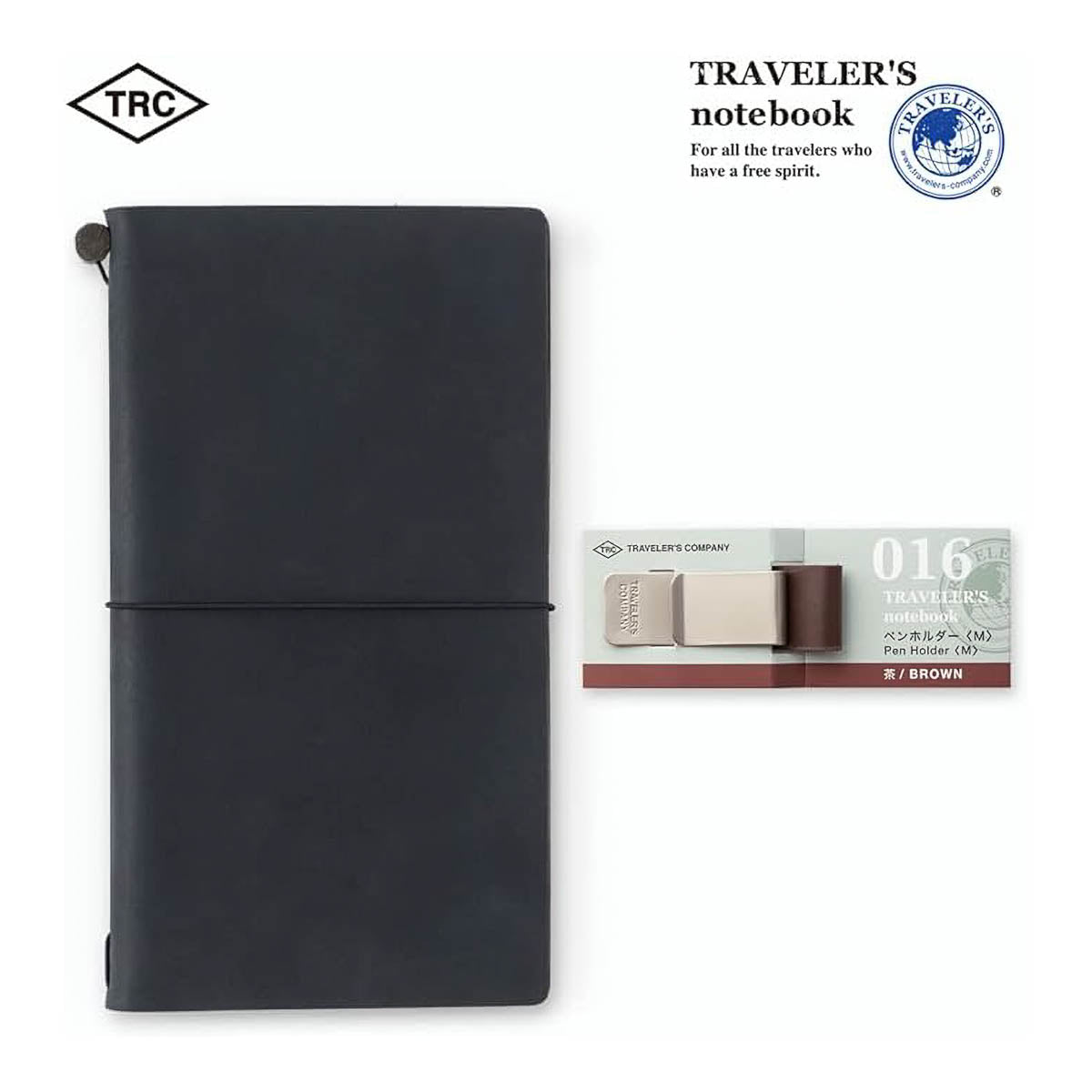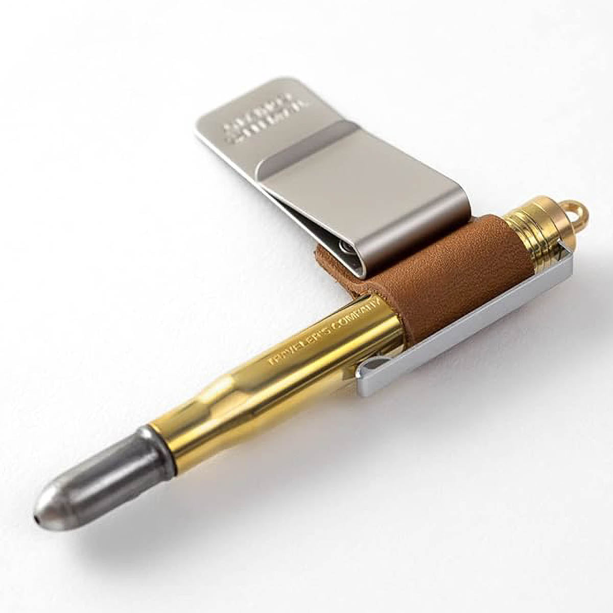 Der Stifthalter in Größe M lässt sich sowohl mit dem Passport- als auch mit dem Regular-Format des TRAVELER’S Notebook verwenden. Er fasst Schreibgeräte bis zu einem Durchmesser von etwa 12 mm und ergänzt das Notizbuch um eine einfache, praktische Befestigungsmöglichkeit. Eine kompakte Lösung, um den bevorzugten Stift stets griffbereit zu haben.